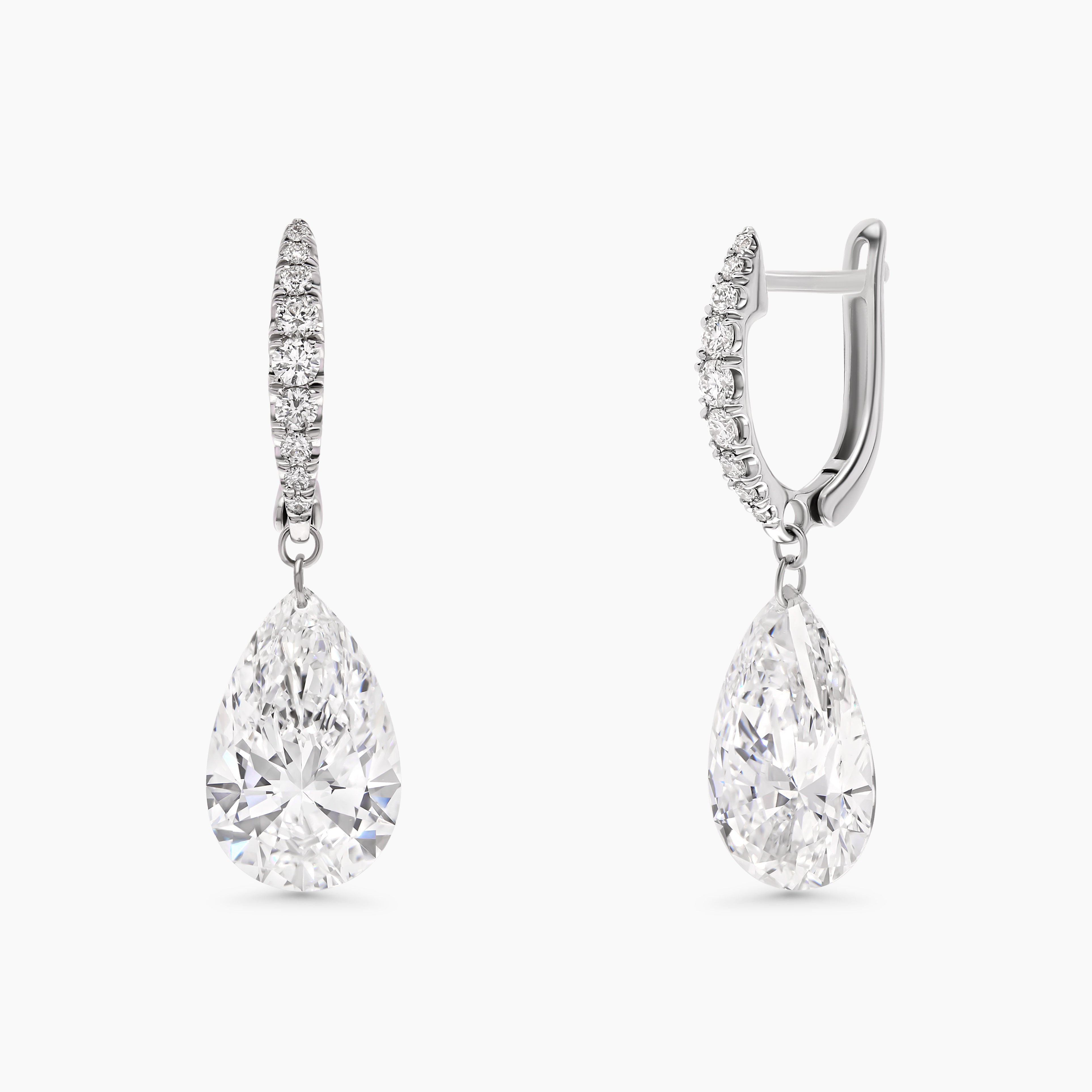 Floating Pear Drop Lab Grown Diamond Huggie Earrings
