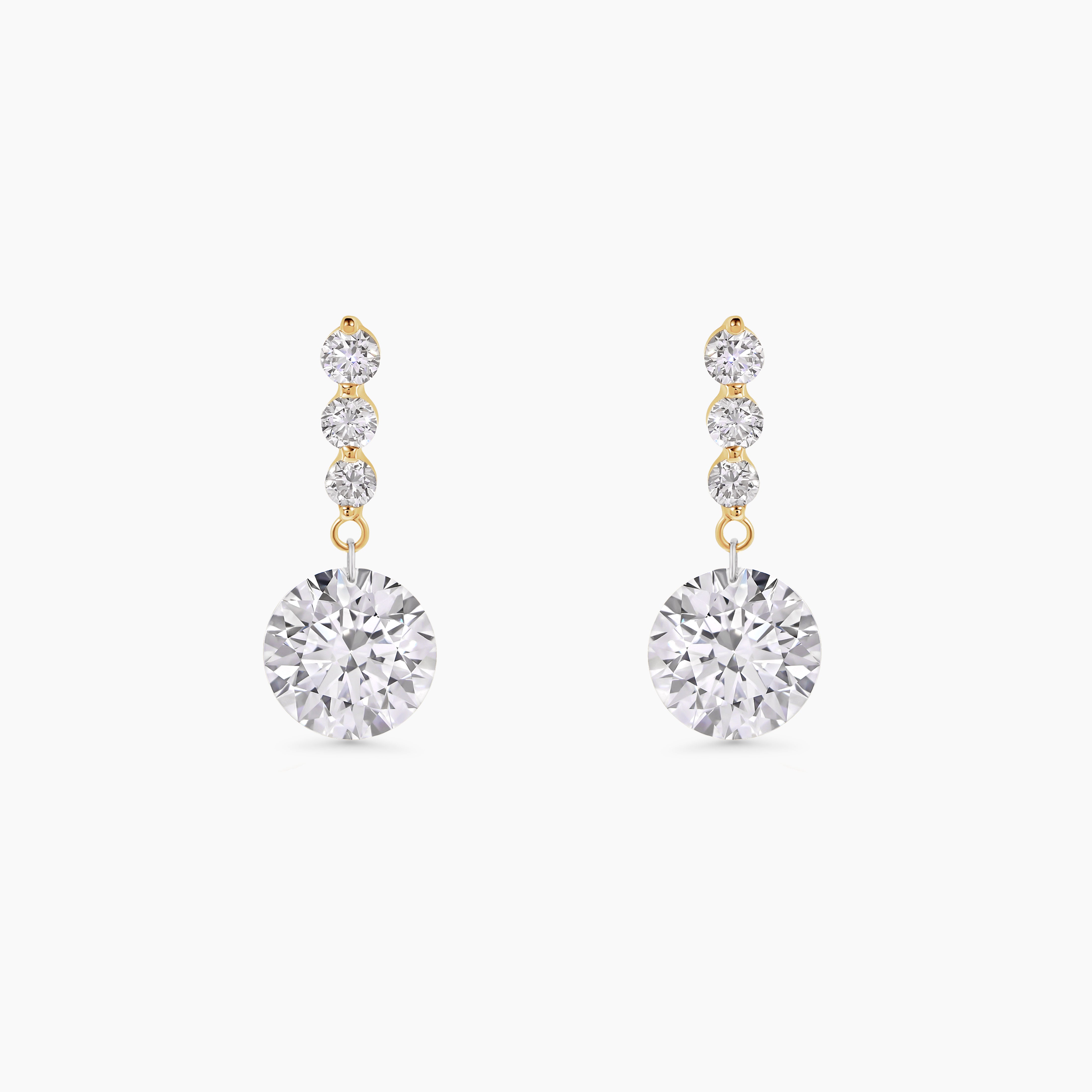 Three diamonds, one graceful line—finished with a floating drop that shimmers with every step. Our Floating Trio Bar Drops graduate from larger to smaller round brilliant lab-grown diamonds, ending in a free-moving diamond for airy movement and maximum sparkle. Sleek and modern, these post-backs glide from day to night.