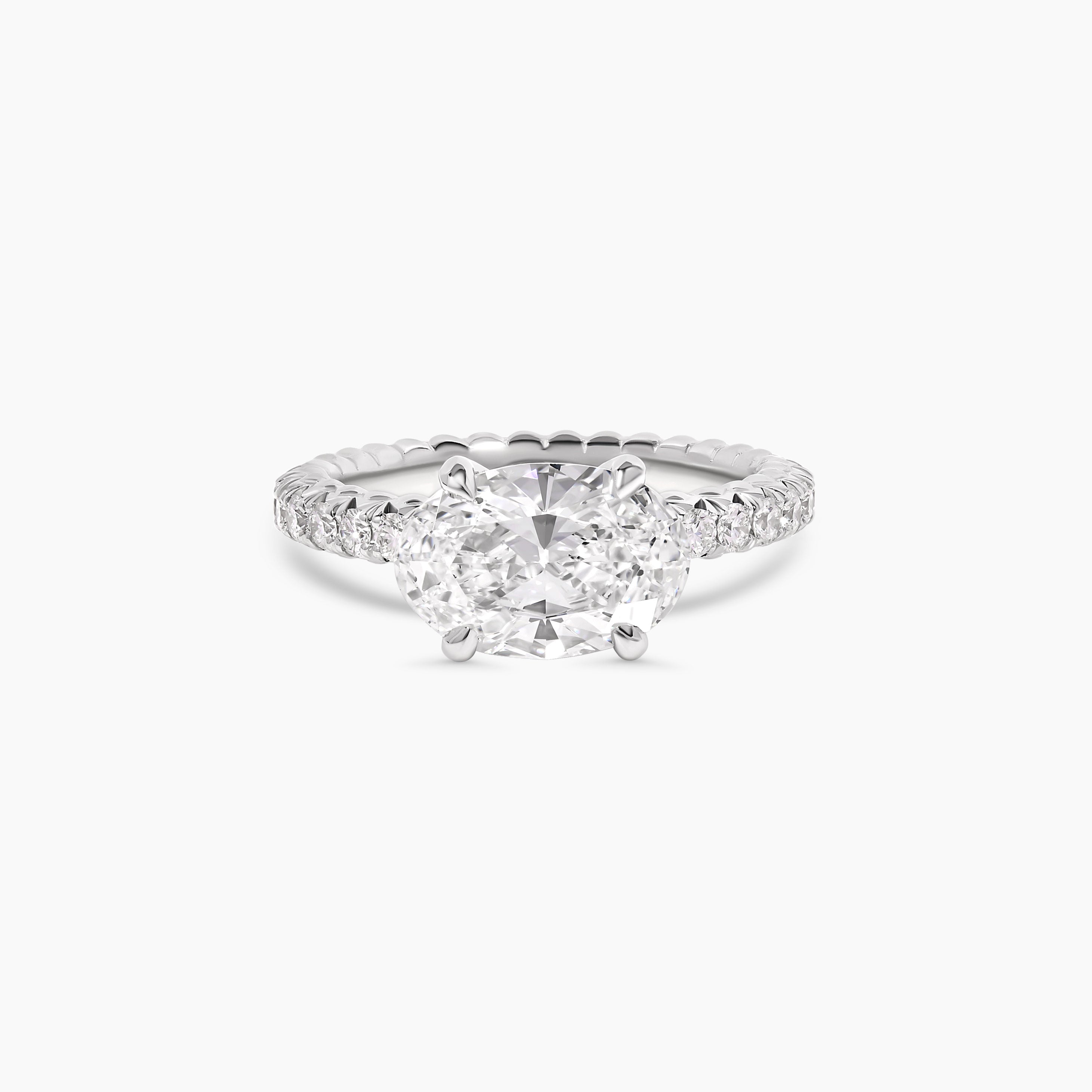 East West Oval Cut Diamond Engagement Ring with French Pavé Band