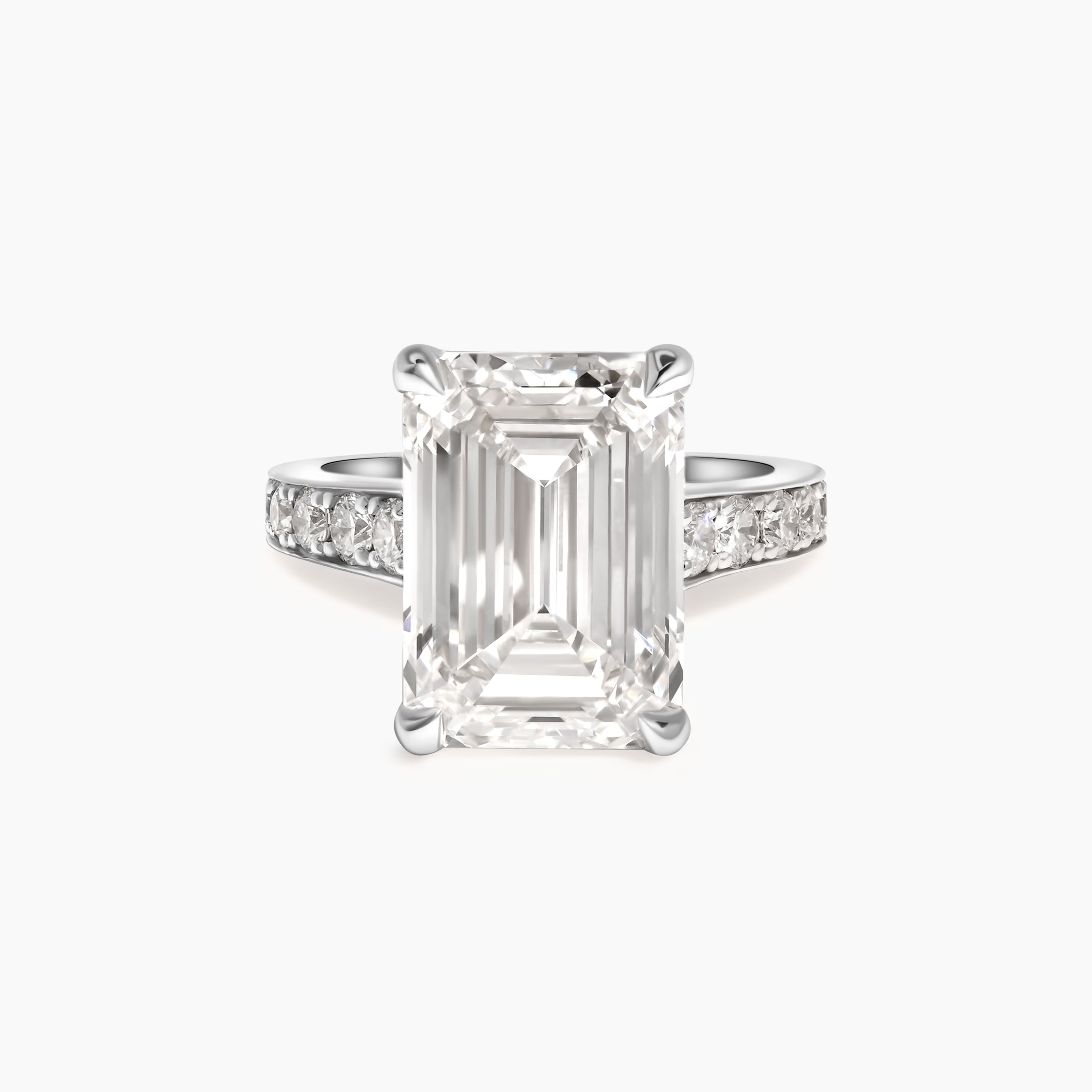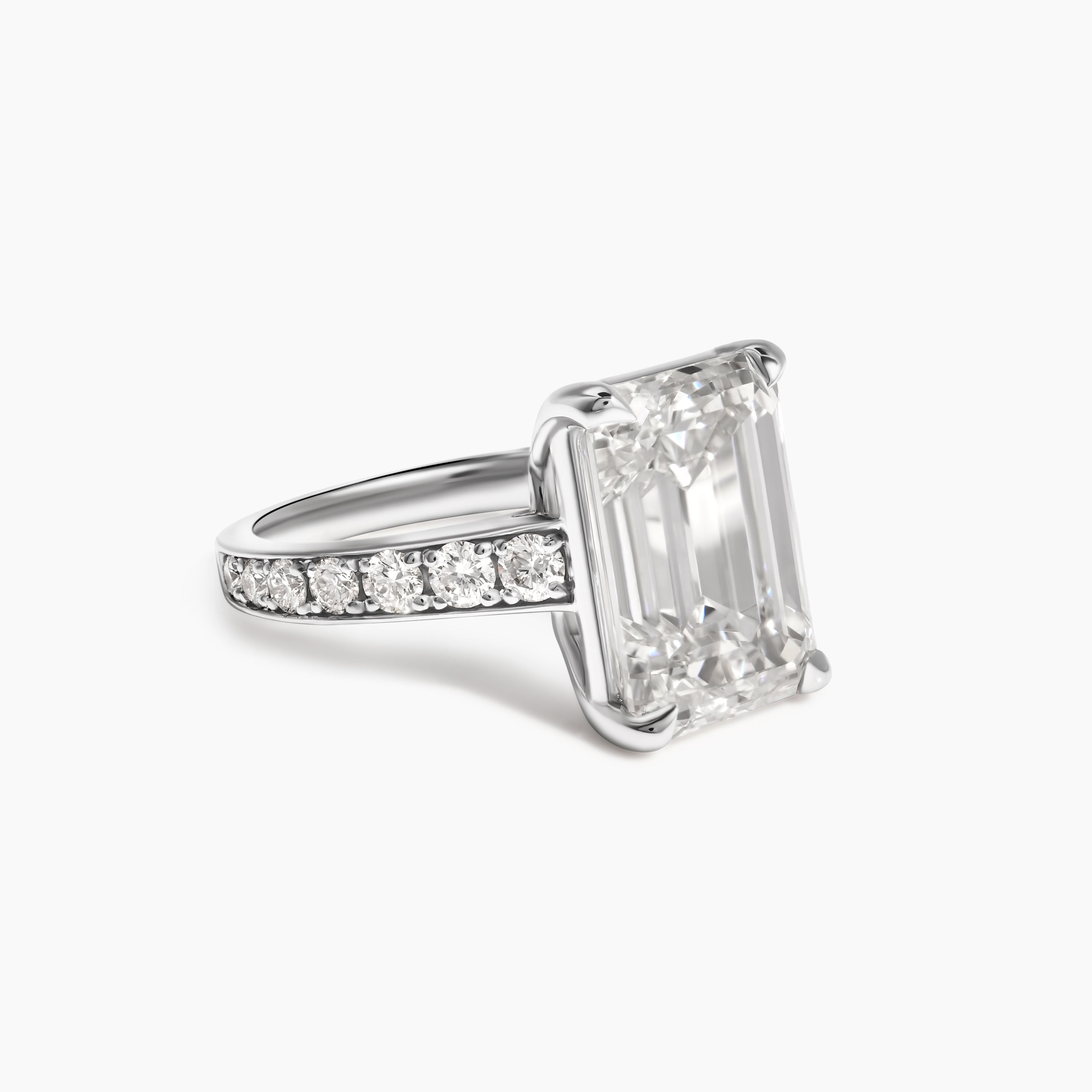 The Emerald Cut Diamond Ring with Channel Side Accents showcases a striking emerald-cut diamond as its centerpiece, exuding sophistication and elegance. The channel-set side accents enhance the ring's simplicity while adding a touch of brilliance and dimension. This understated design highlights the beauty of the central stone, making it a perfect choice for those who appreciate refined, minimalist jewelry.