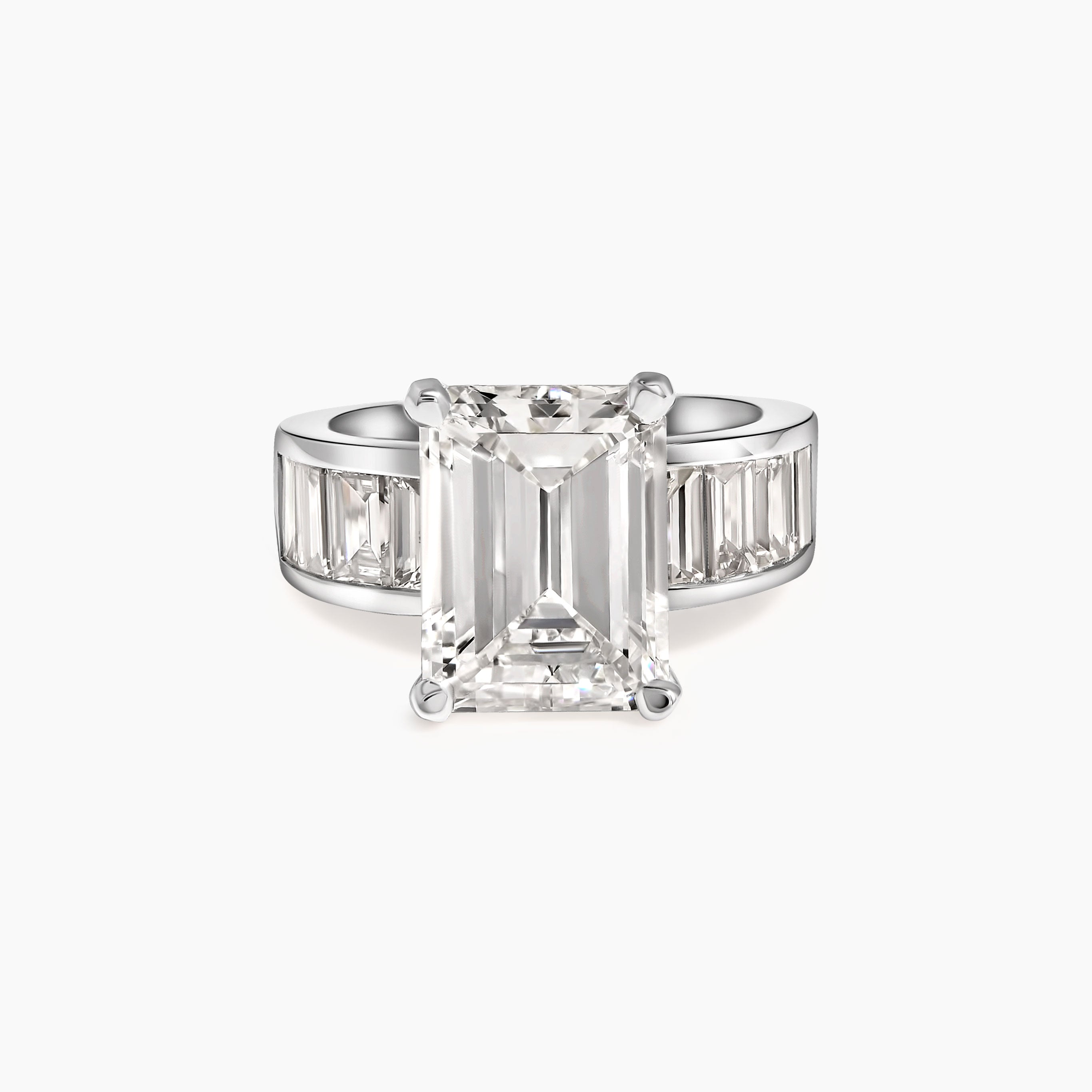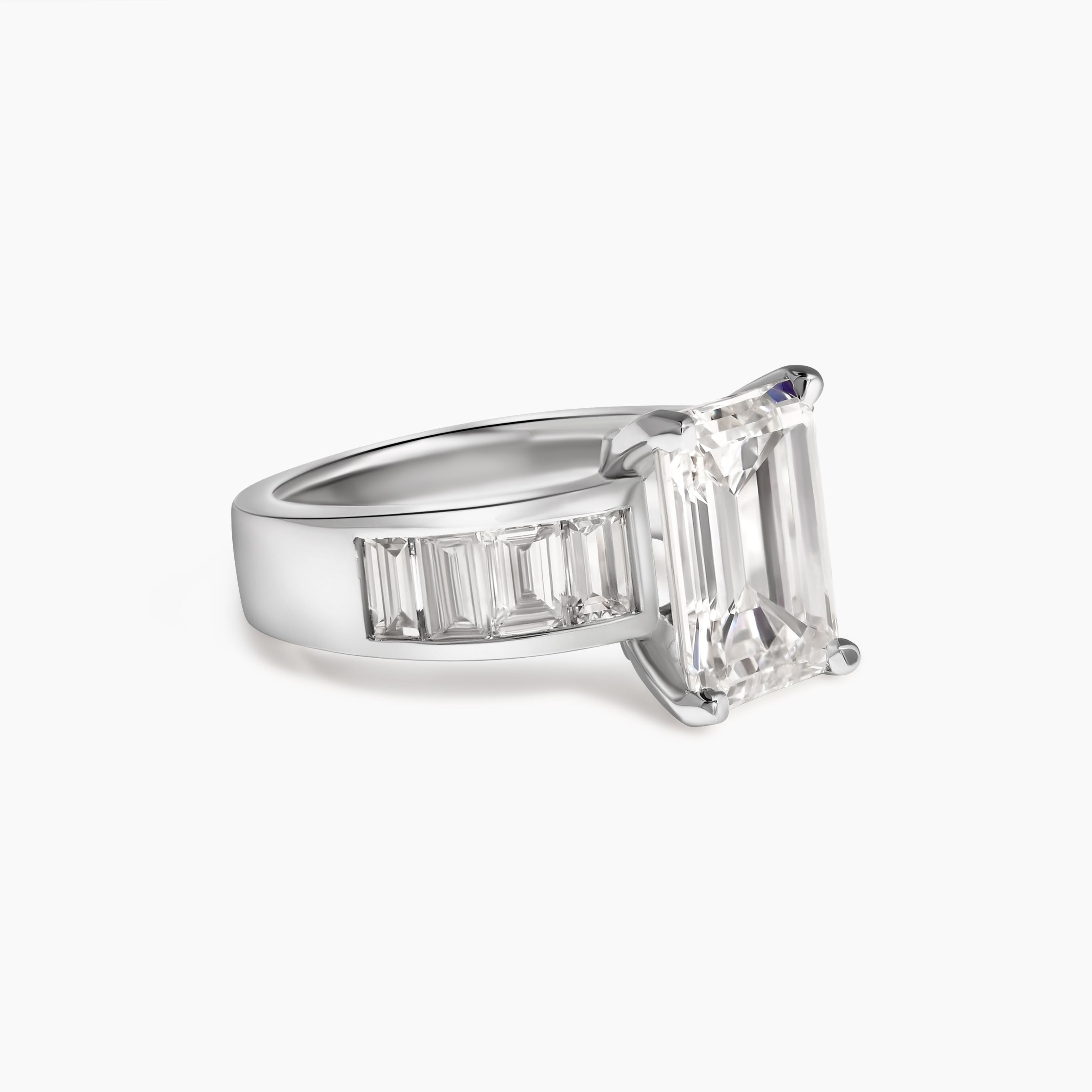 Emerald Cut Diamond with Emerald Side Stone Ring