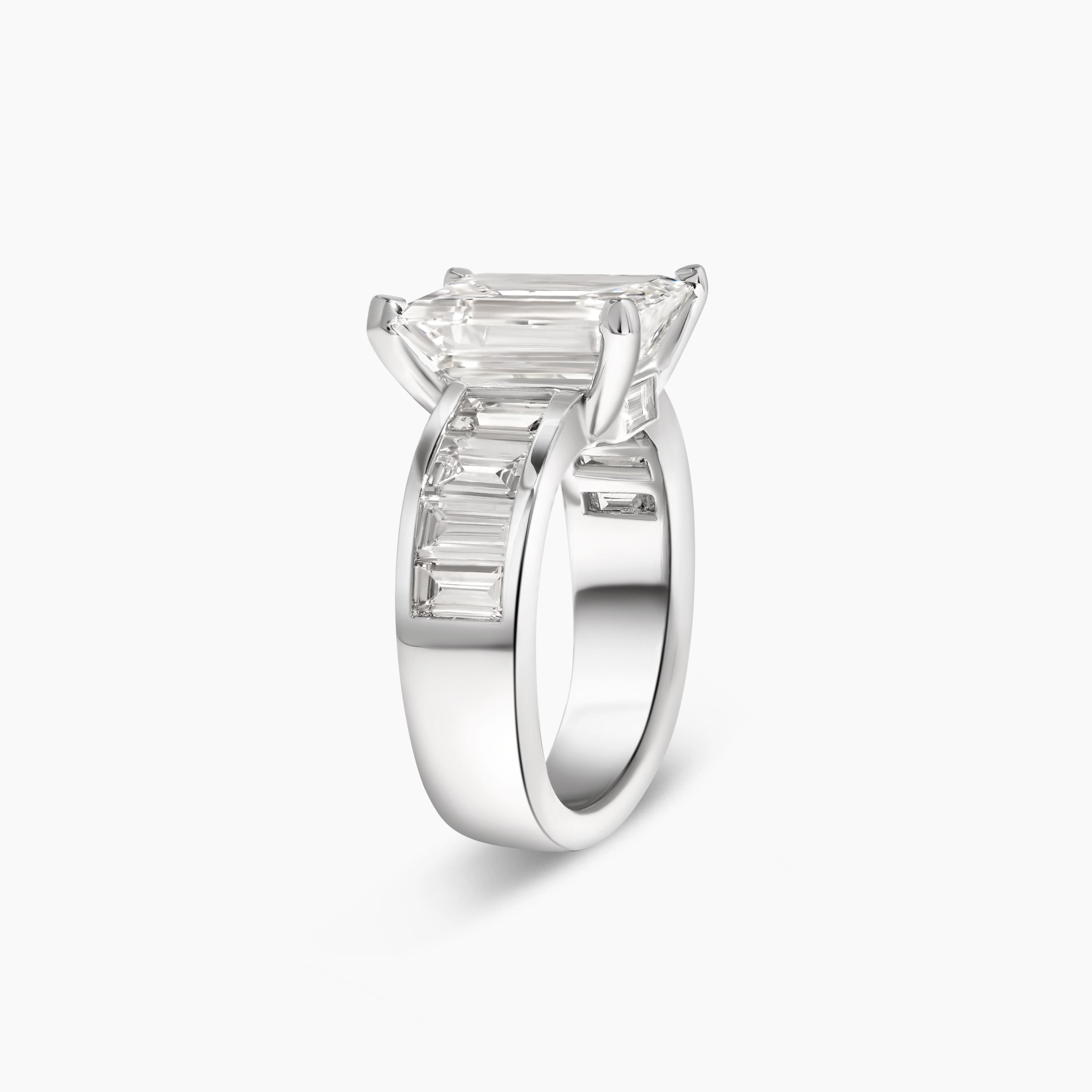 This Emerald Cut Diamond Ring features a captivating emerald-cut diamond as its centerpiece, surrounded by complementary emerald side stones. The broad band offers both substantiality and comfort, making it suitable for daily wear. Its understated elegance and minimalist design make it the perfect choice for those who value timeless beauty and refined sophistication.