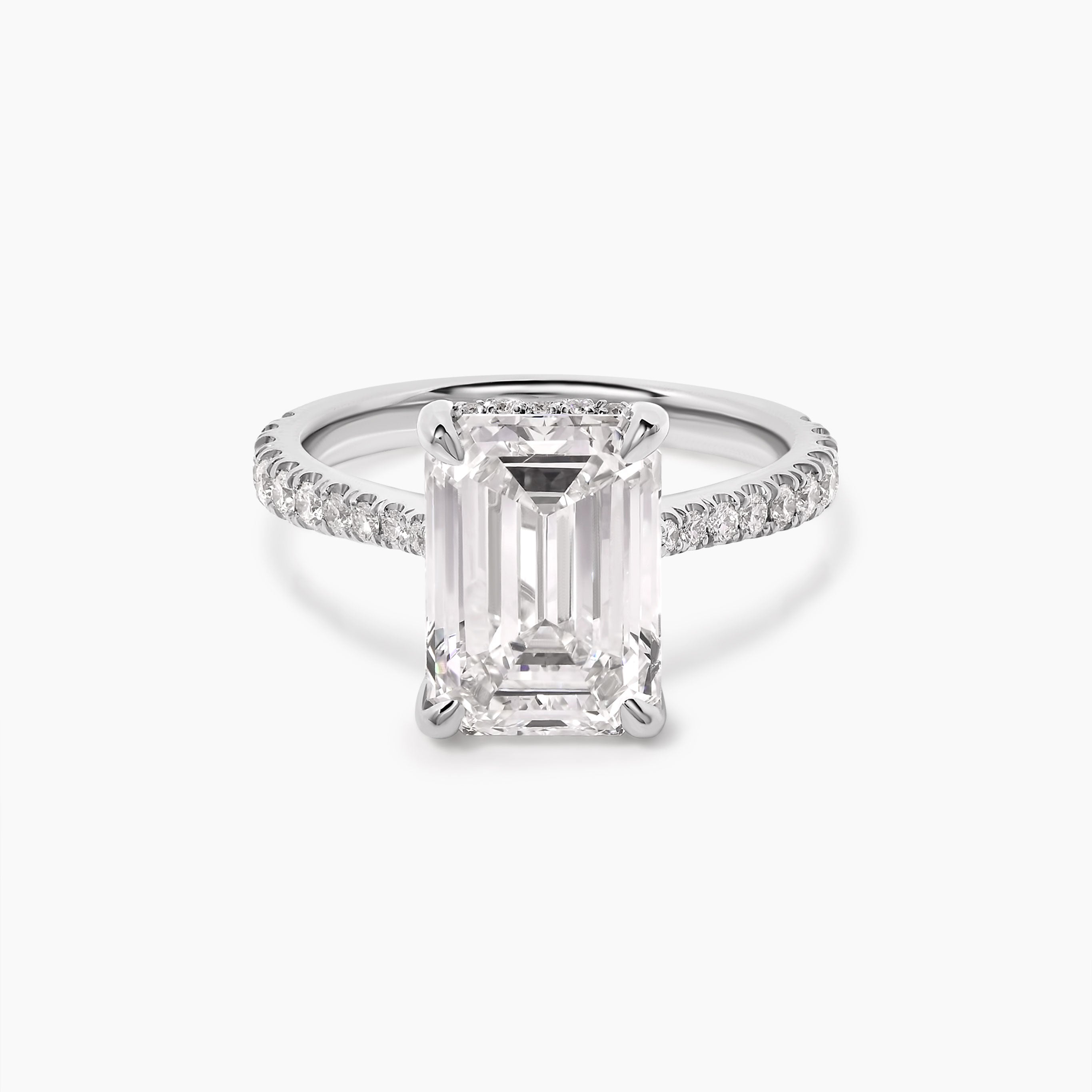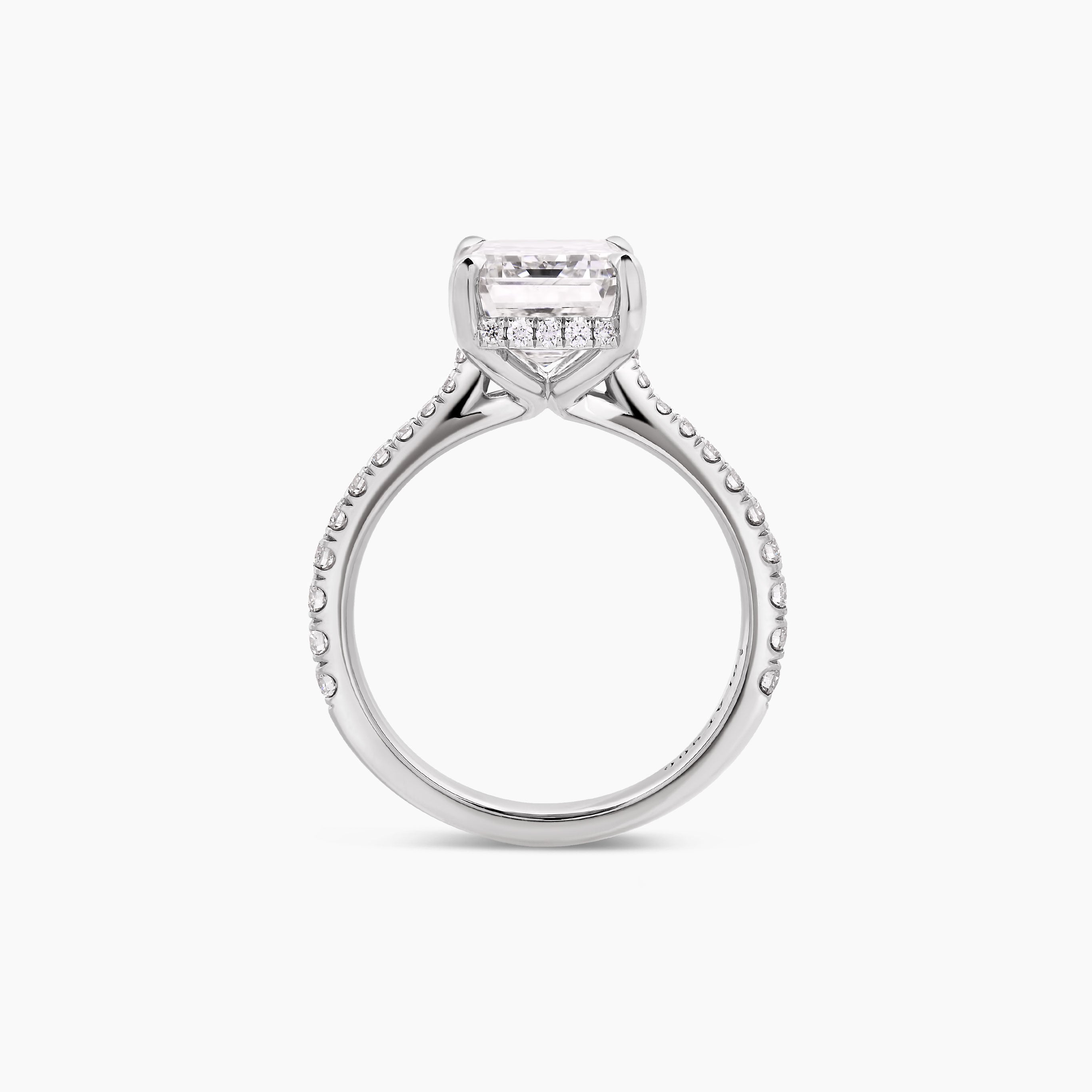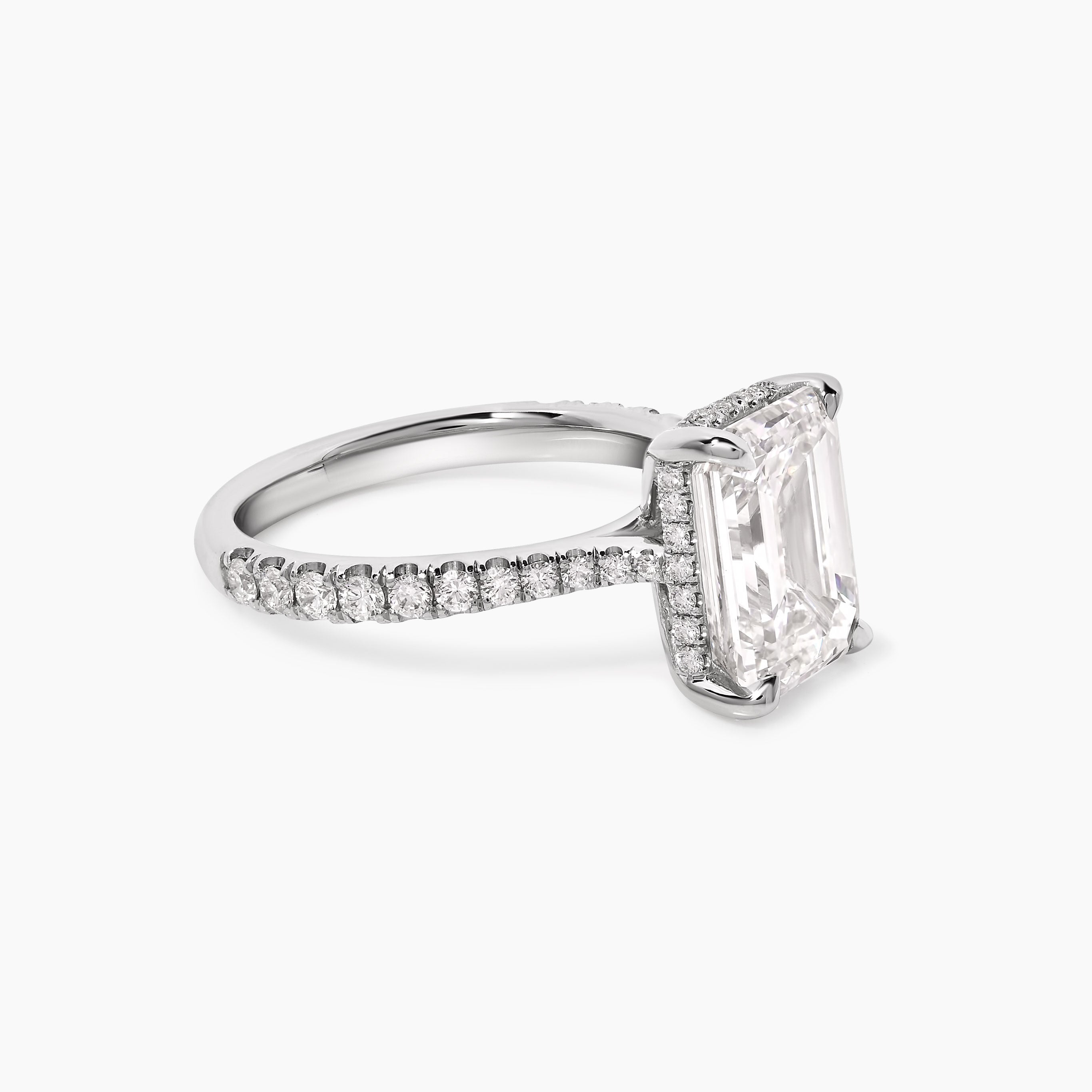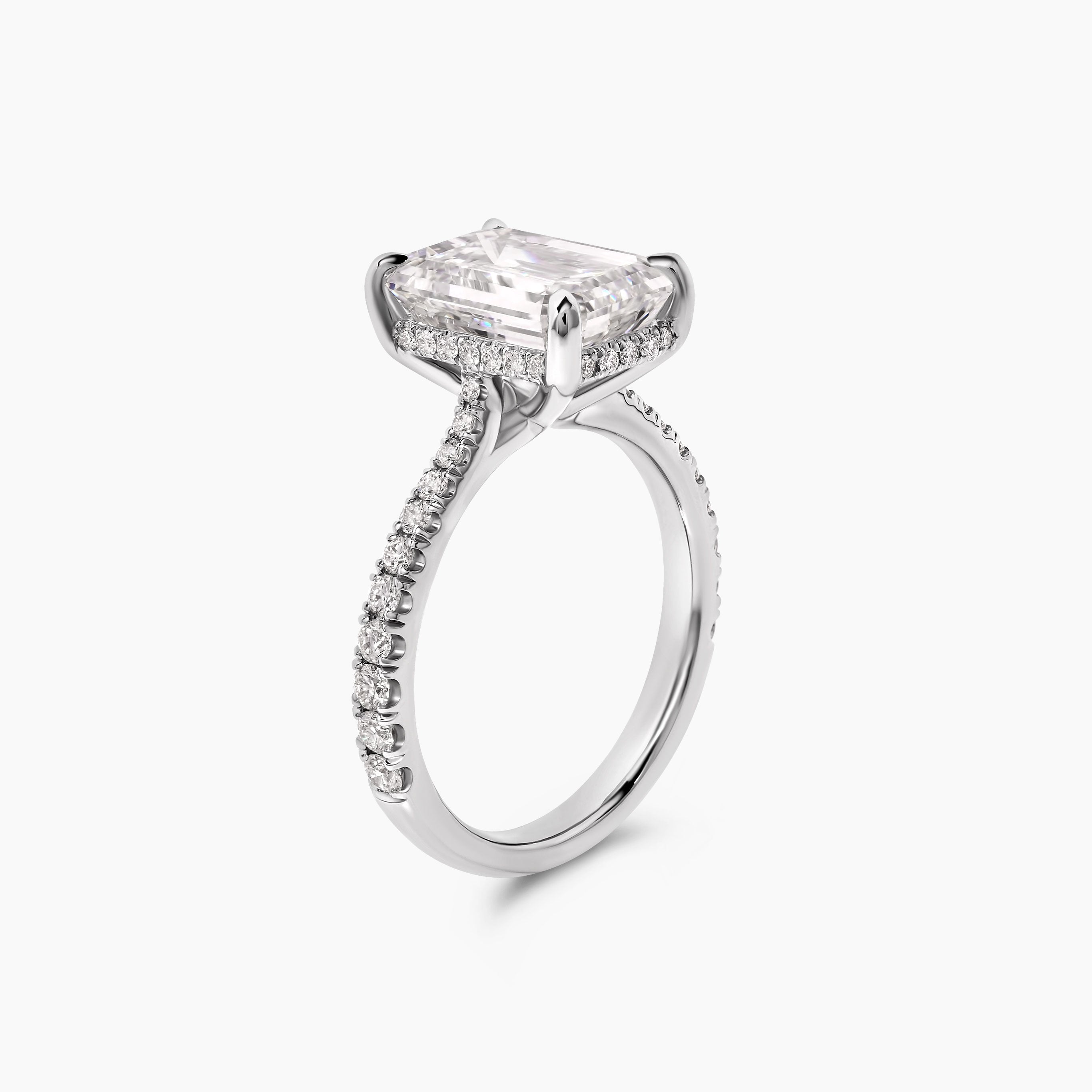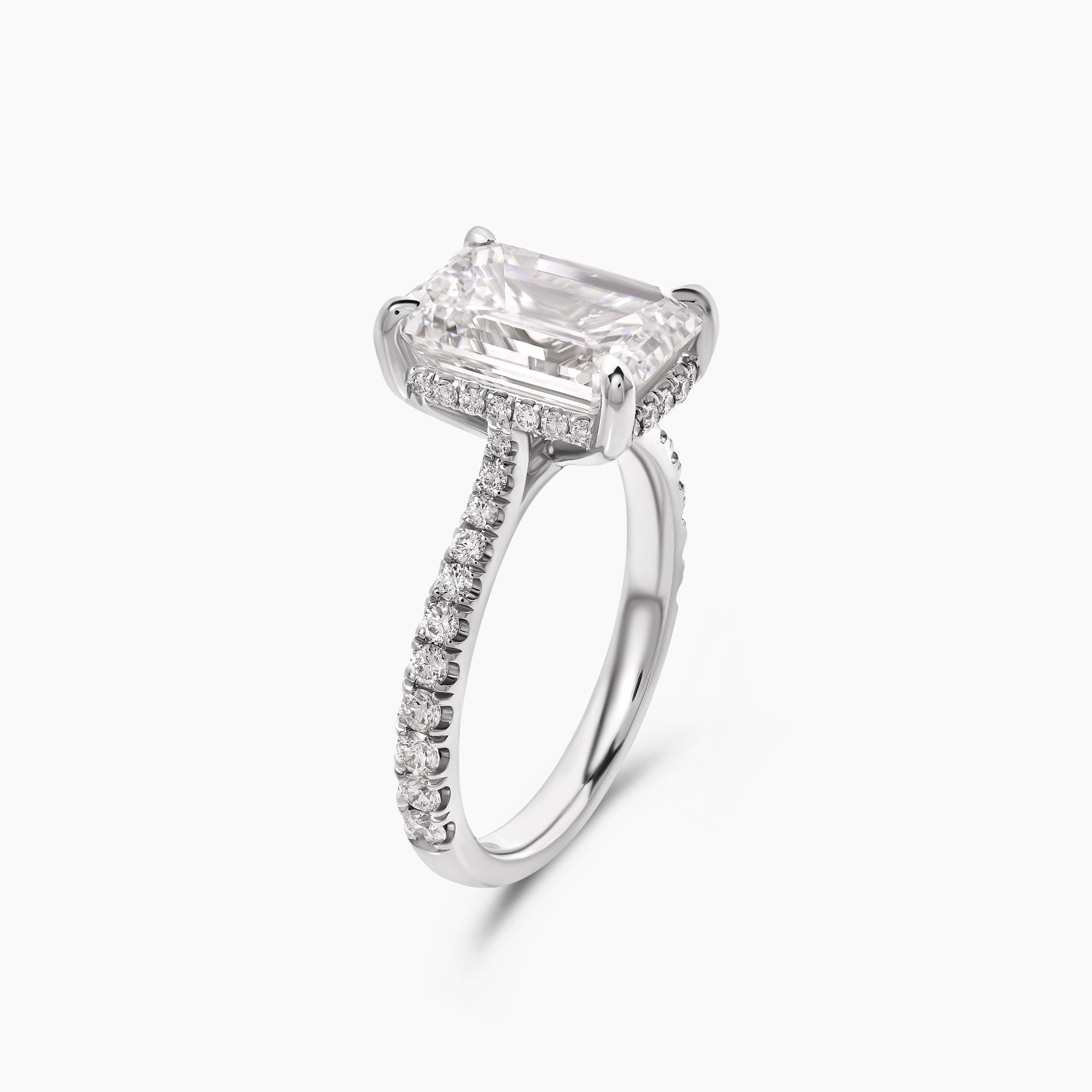 This unique Emerald Cut Hidden Halo Diamond Ring showcases a stunning emerald-cut diamond, surrounded by a subtle hidden halo of smaller diamonds that add a touch of shimmering elegance. The design perfectly enhances the beauty of the center stone without overpowering it, with a minimalistic shank and delicate diamond accents delivering just the right amount of detail. This ring balances modern elegance with timeless charm.