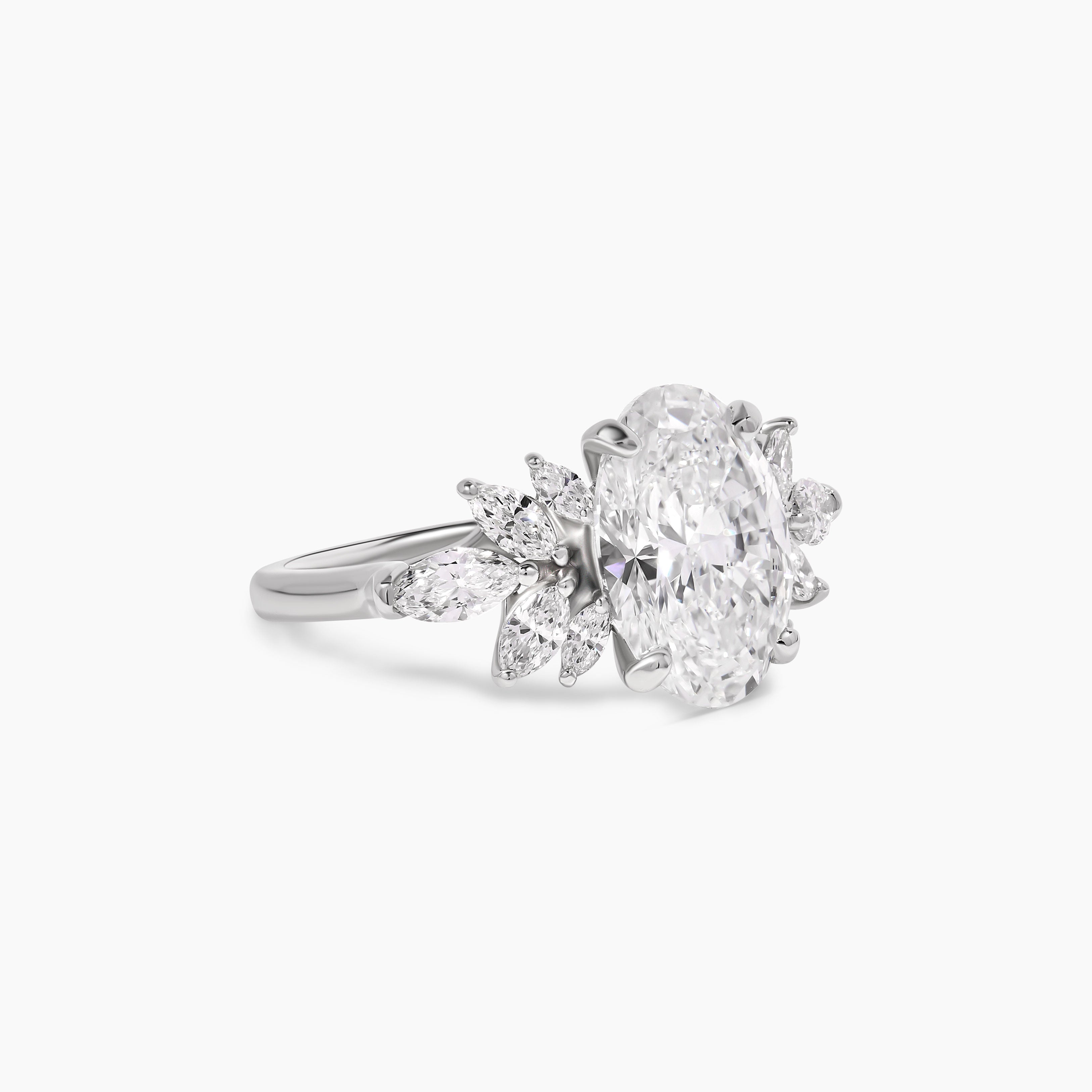 Oval Cut Diamond Ring with Marquise Diamond Accents