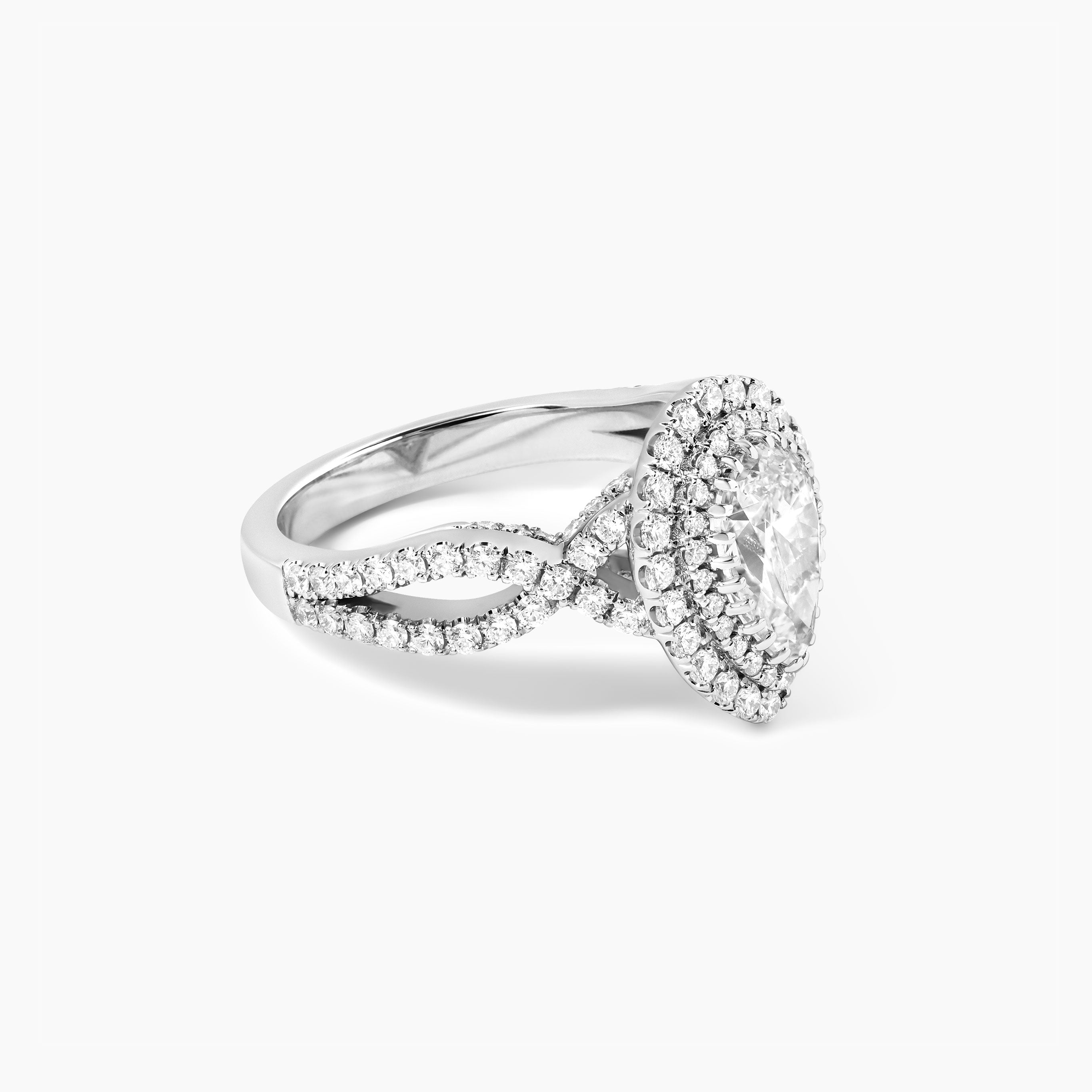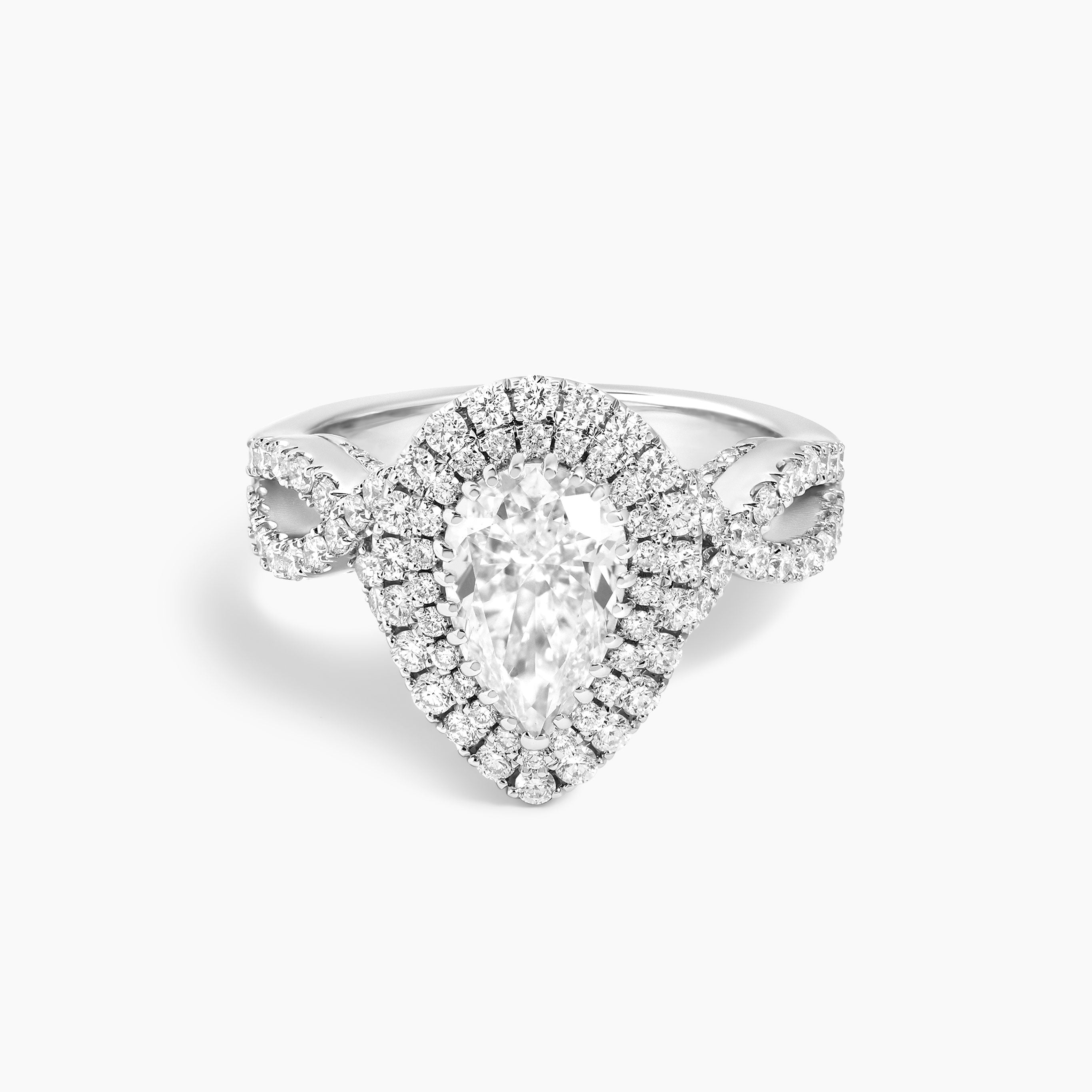 Pear Shaped Diamond with Double Halo Twist Engagement Ring