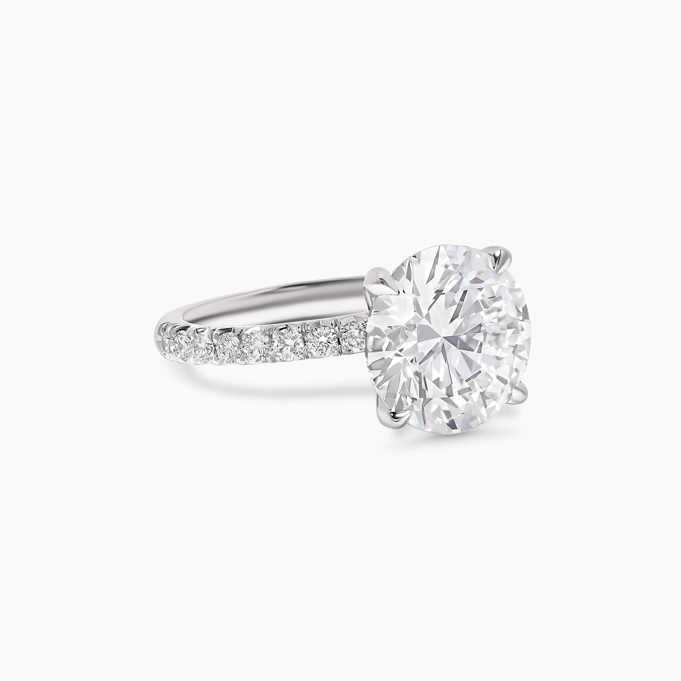 Elegant and timeless, this ring features a dazzling round brilliant cut lab grown diamond as its centerpiece, celebrated for its unmatched fire and brilliance. The sleek solitaire design is elevated with a diamond-accented band, set with sparkling lab grown diamonds that enhance the beauty of the center stone.
