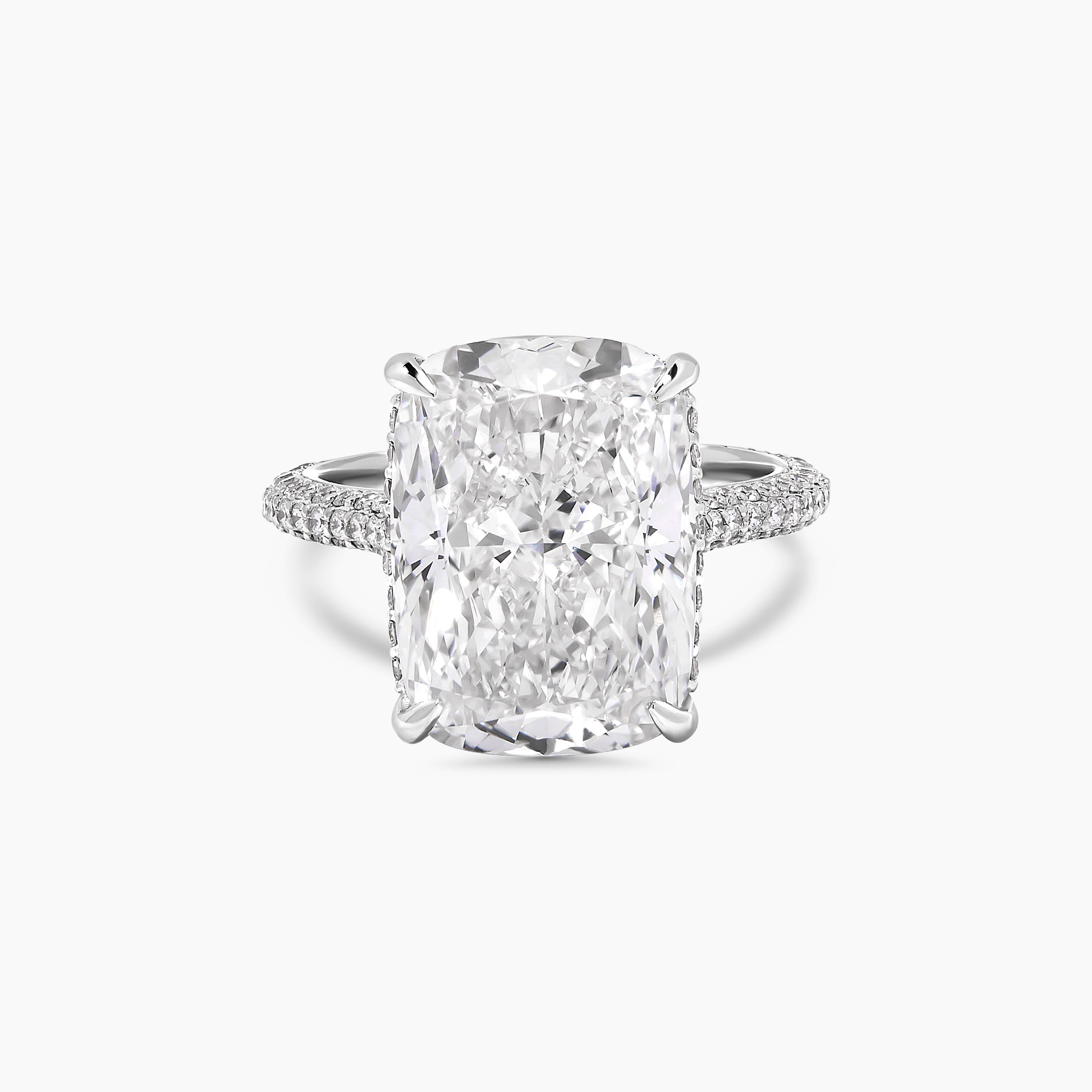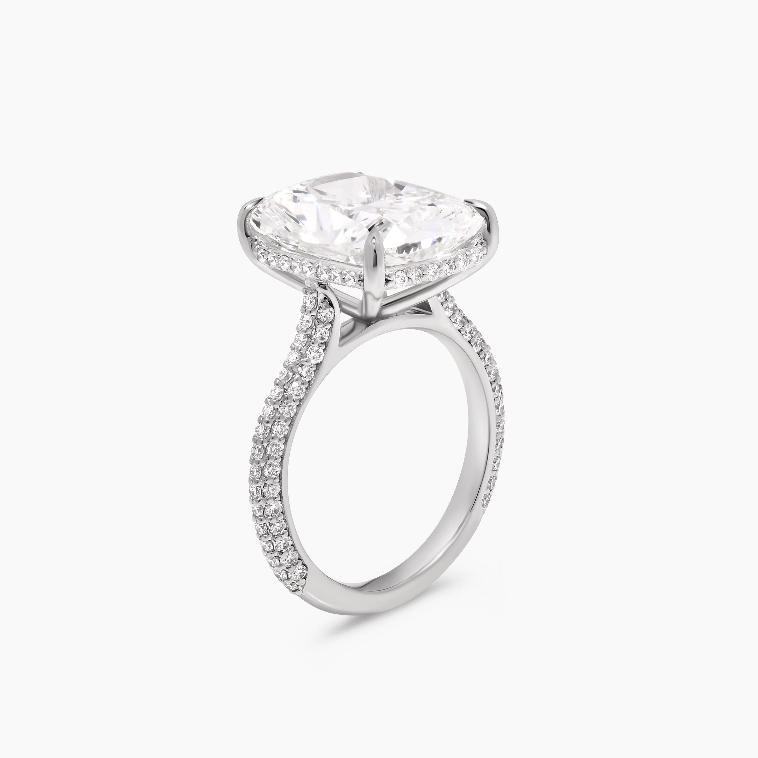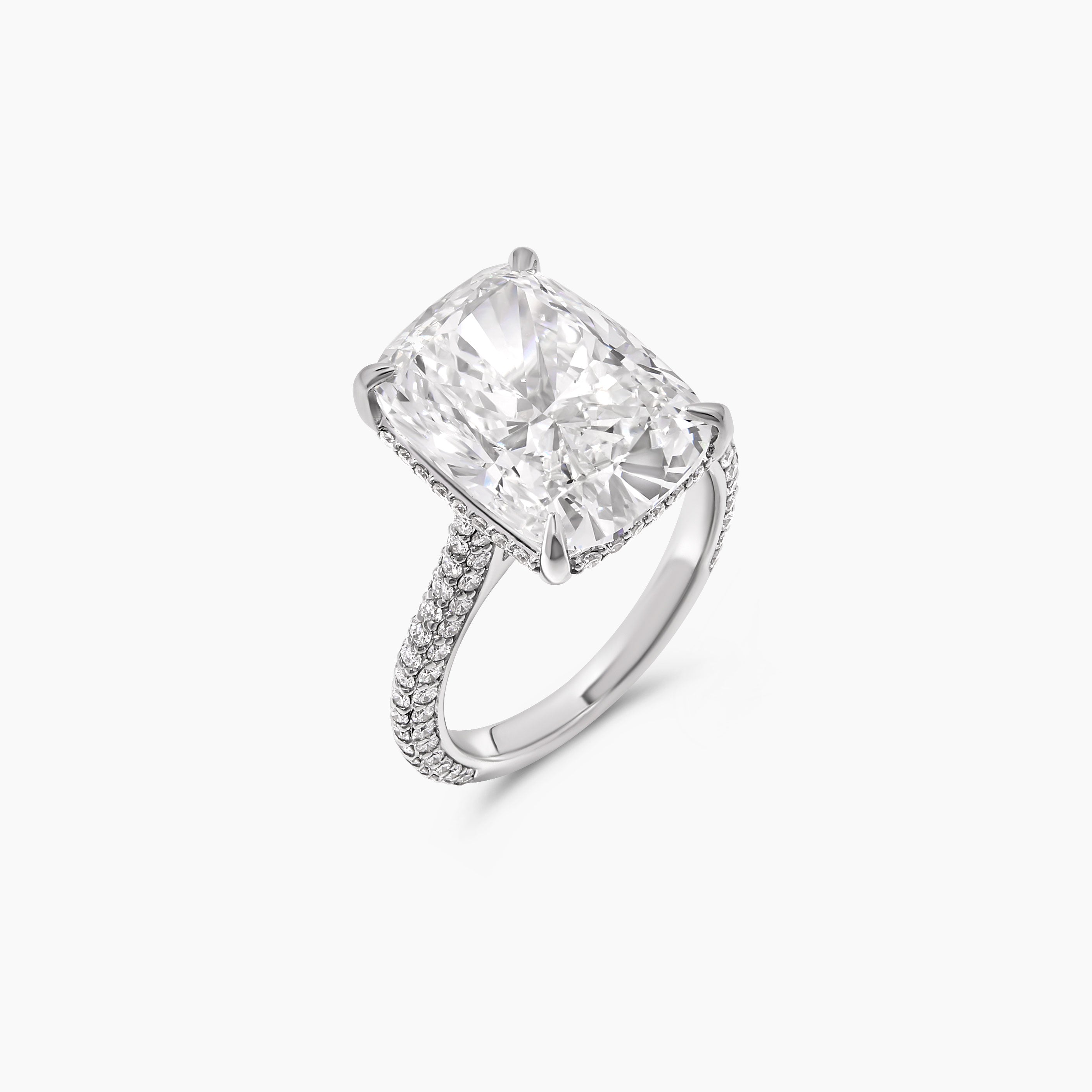 Platinum Elongated Cushion Engagement Ring with 3 Row Diamond Band