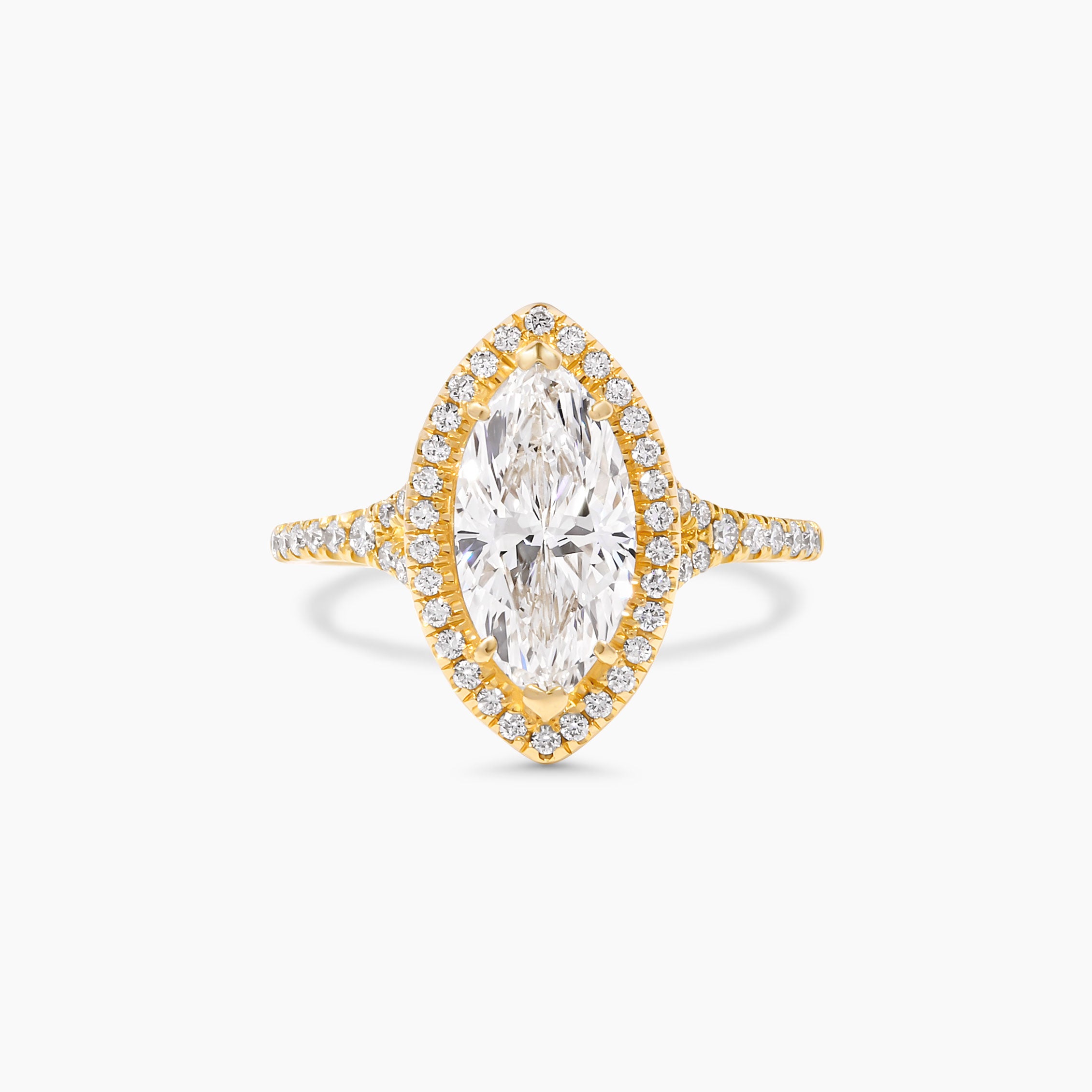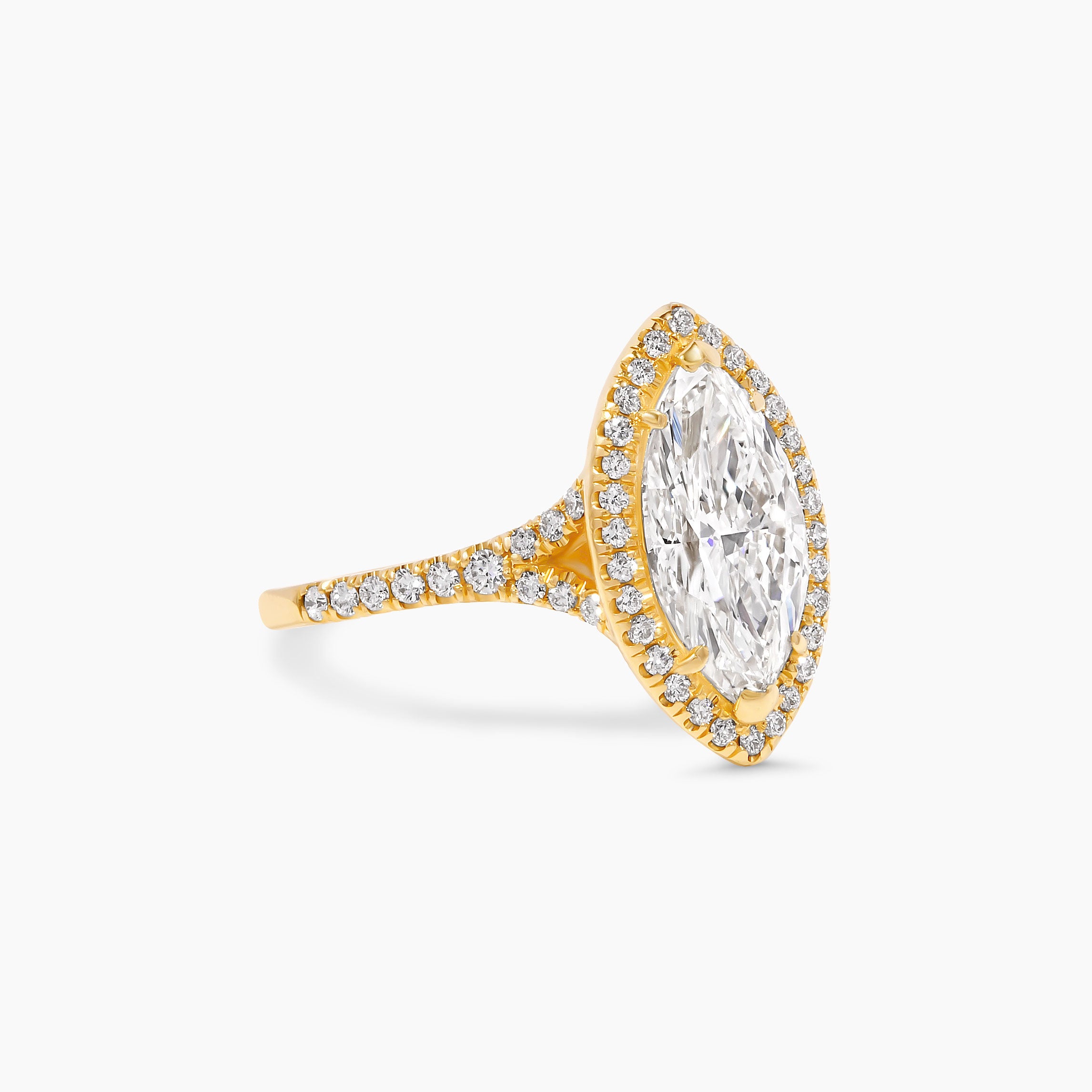 Yellow Gold Marquise Diamond Halo Split Band Ring