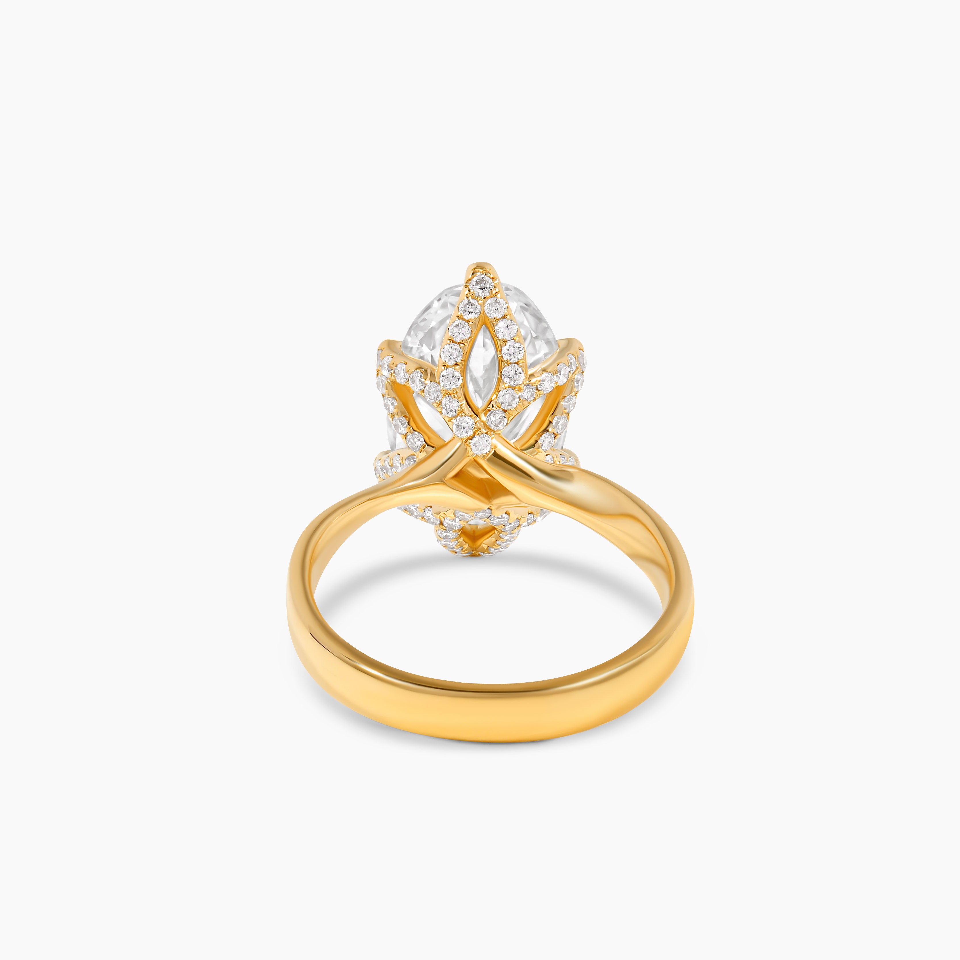 Yellow Gold Oval Lab Grown Diamond Ring with Petal Setting