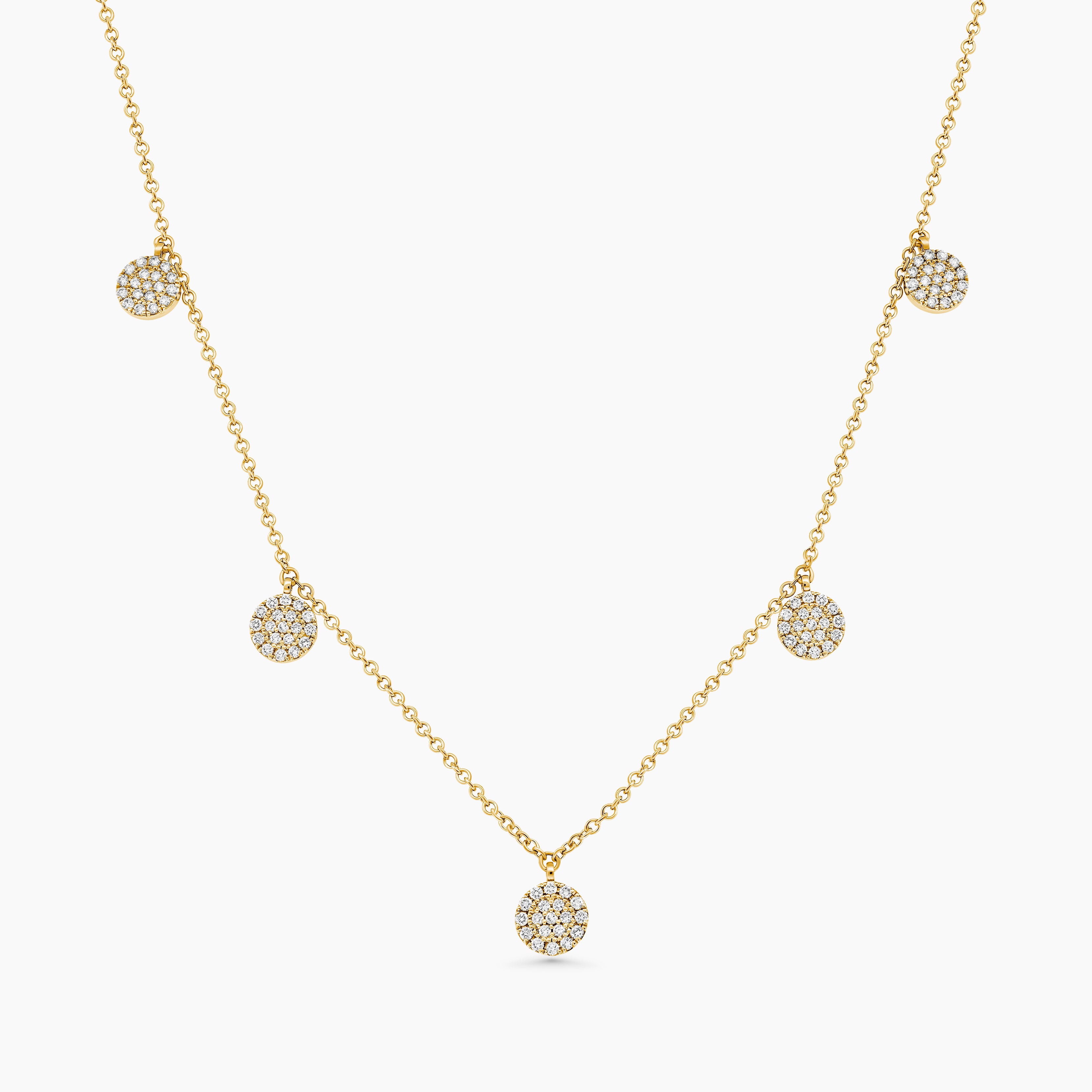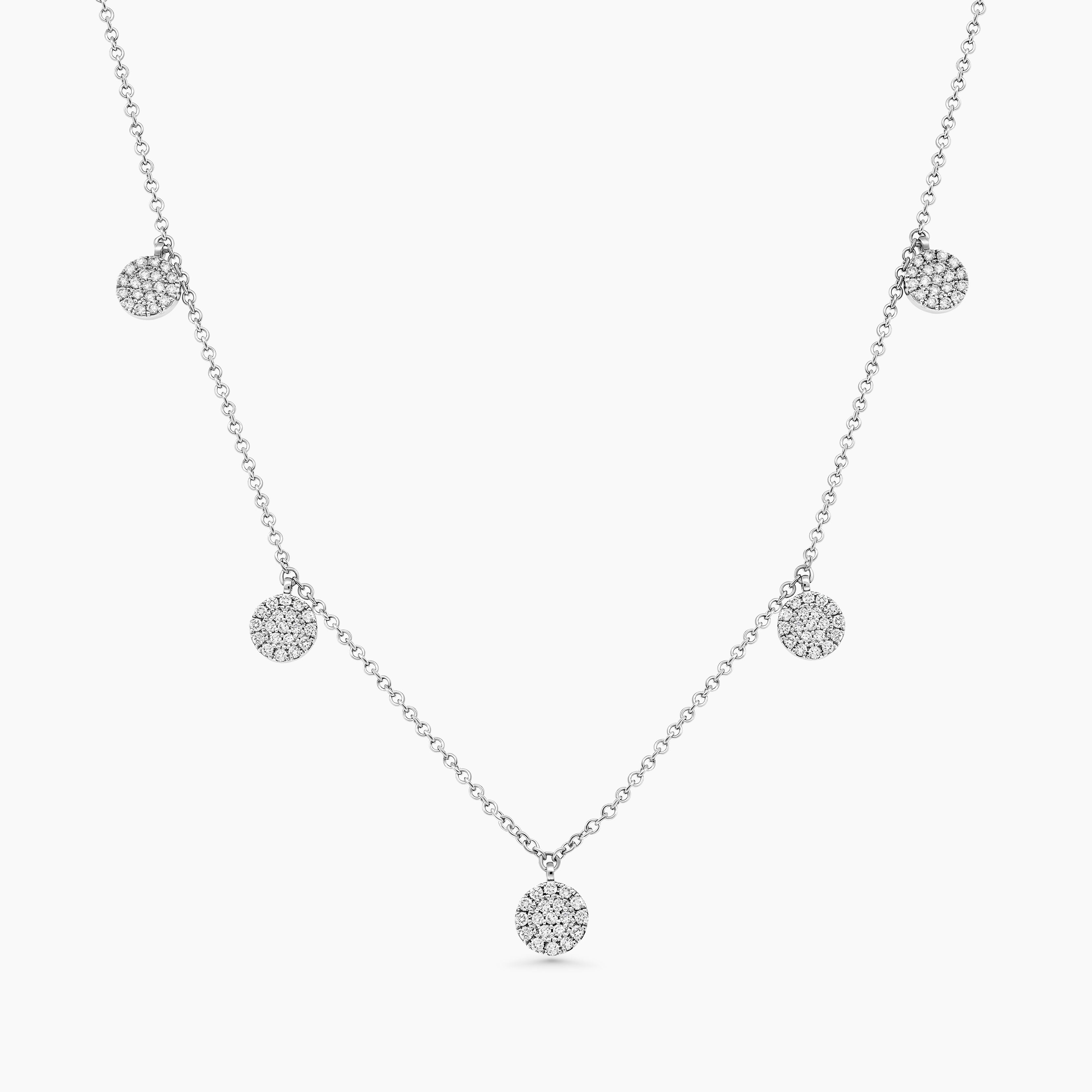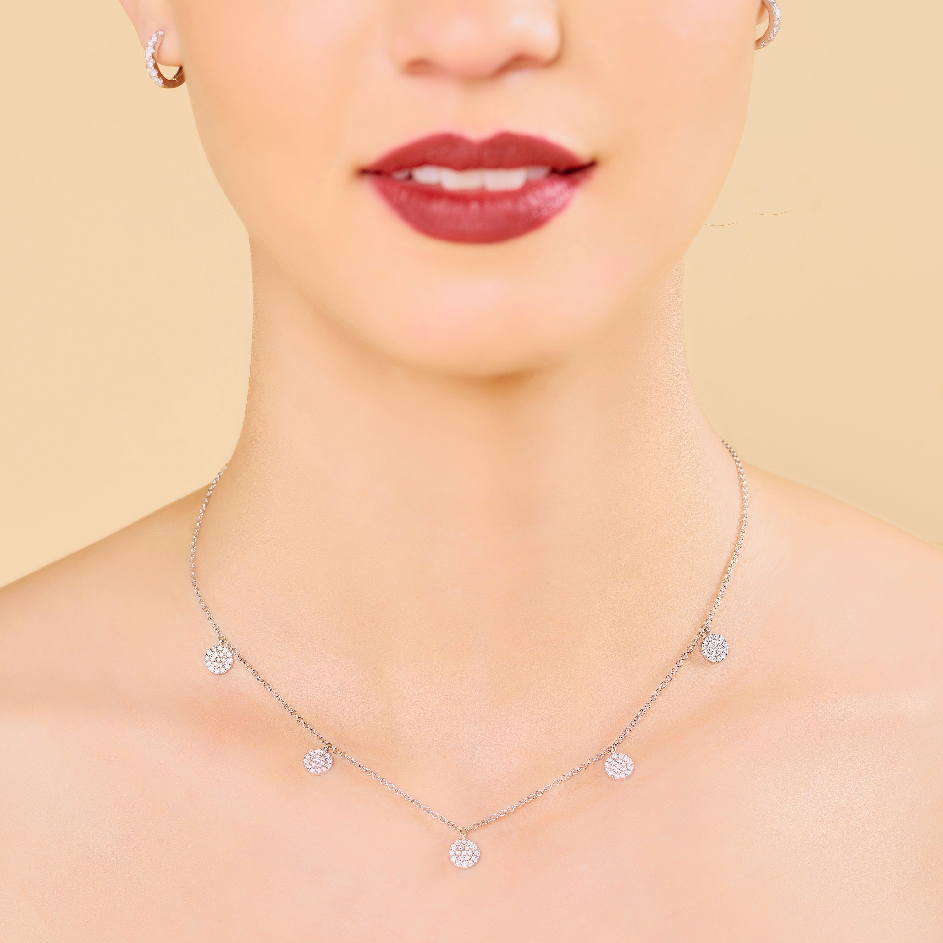This necklace boasts five beautifully crafted stations adorned with shimmering pave-set diamonds, providing a sophisticated sparkle that elevates any ensemble. Its classic charm makes it an ideal accessory for both everyday wear and formal occasions, promising a radiant glow for any event.