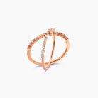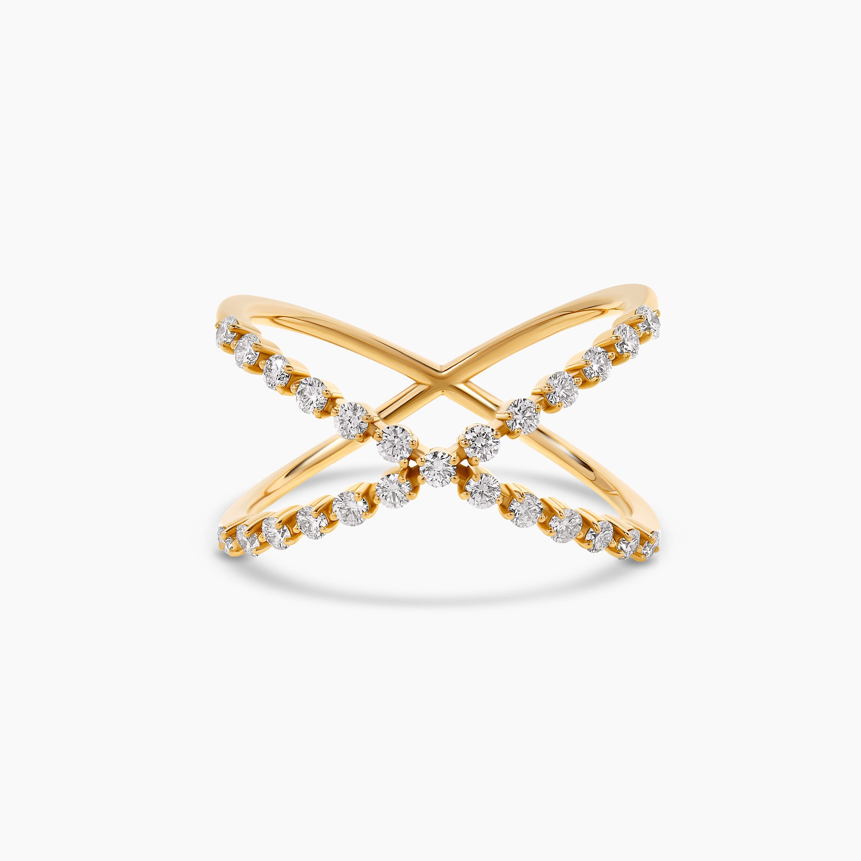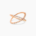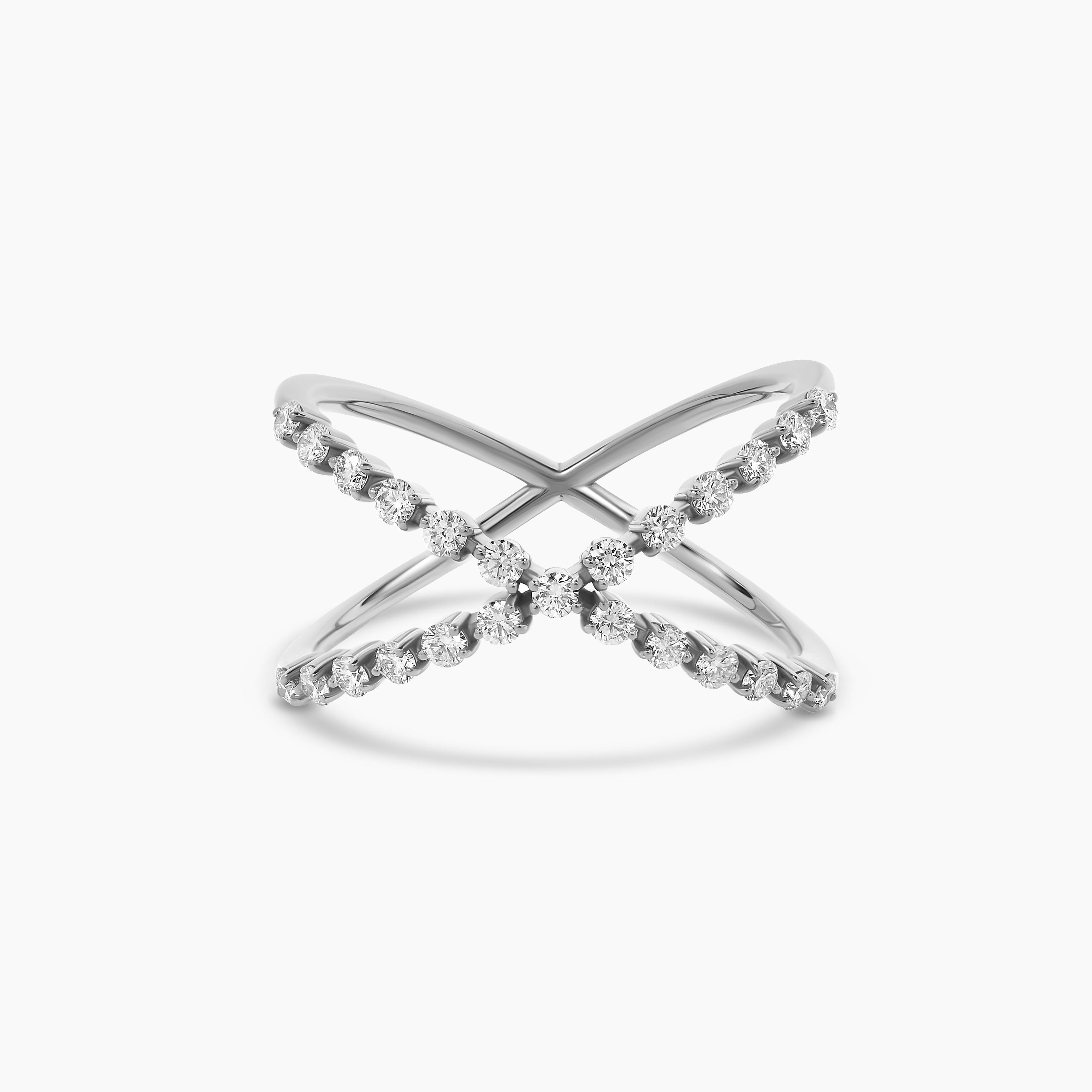 This criss cross diamond ring is crafted with a sleek two-prong setting that highlights each stone’s brilliance while maintaining a refined, modern look. The overlapping bands create a graceful silhouette, offering both sparkle and sophistication.