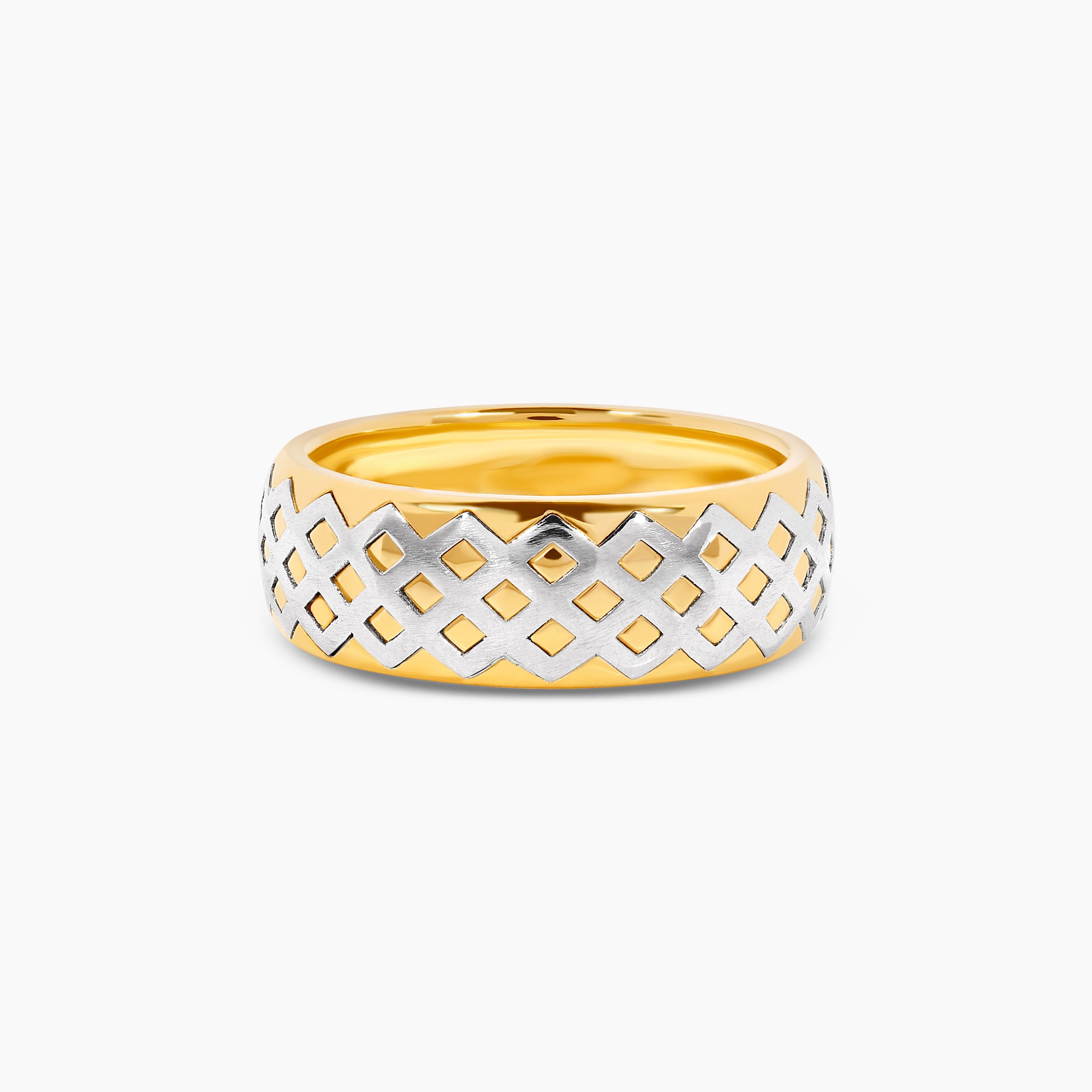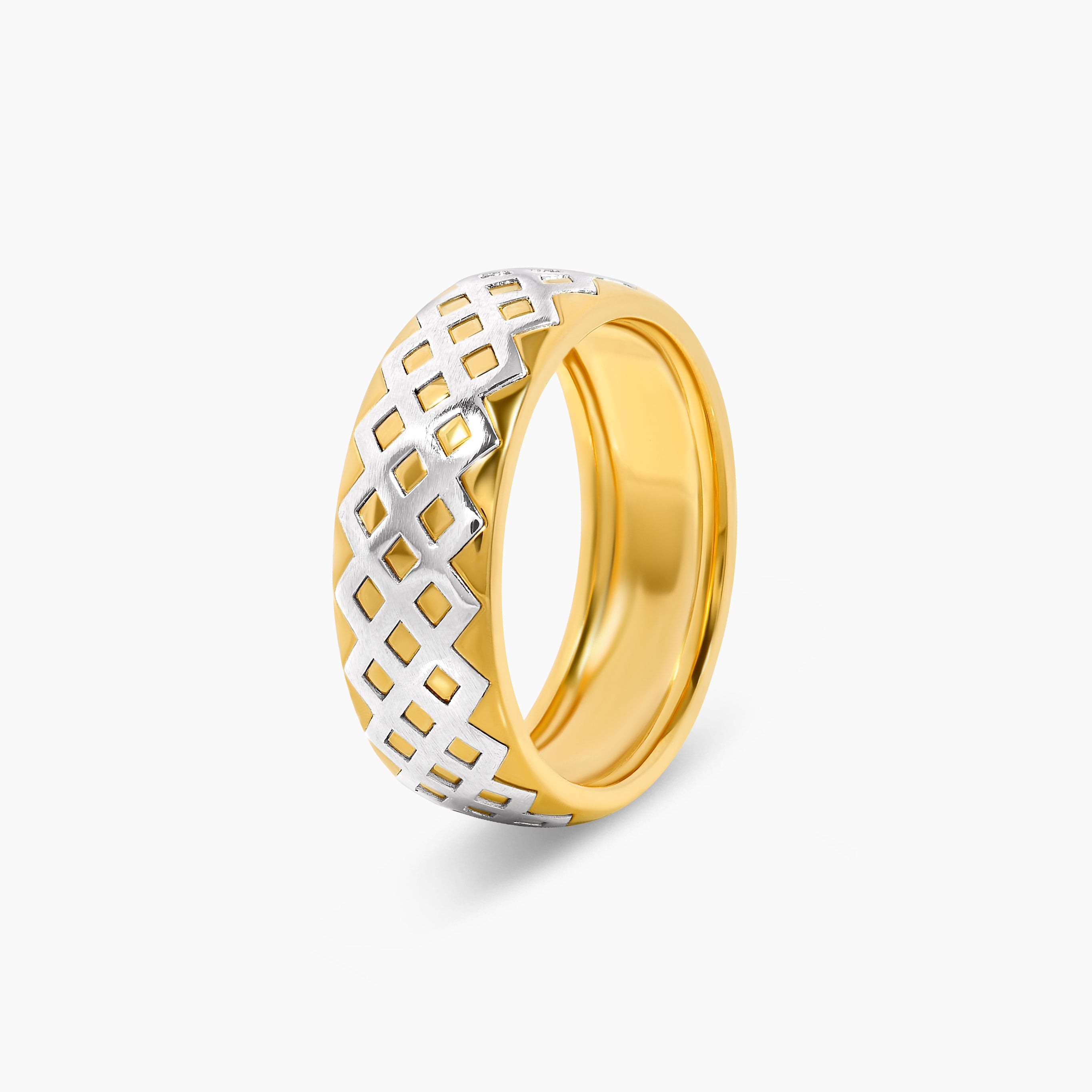 Discover our Cross Patterned Two Tone Men's Band. The unique cross-patterned design exudes a bold, masculine appeal, while blending sophistication and durability. This ring offers a fresh spin on traditional two-tone styles, making it a distinctive and stylish choice.