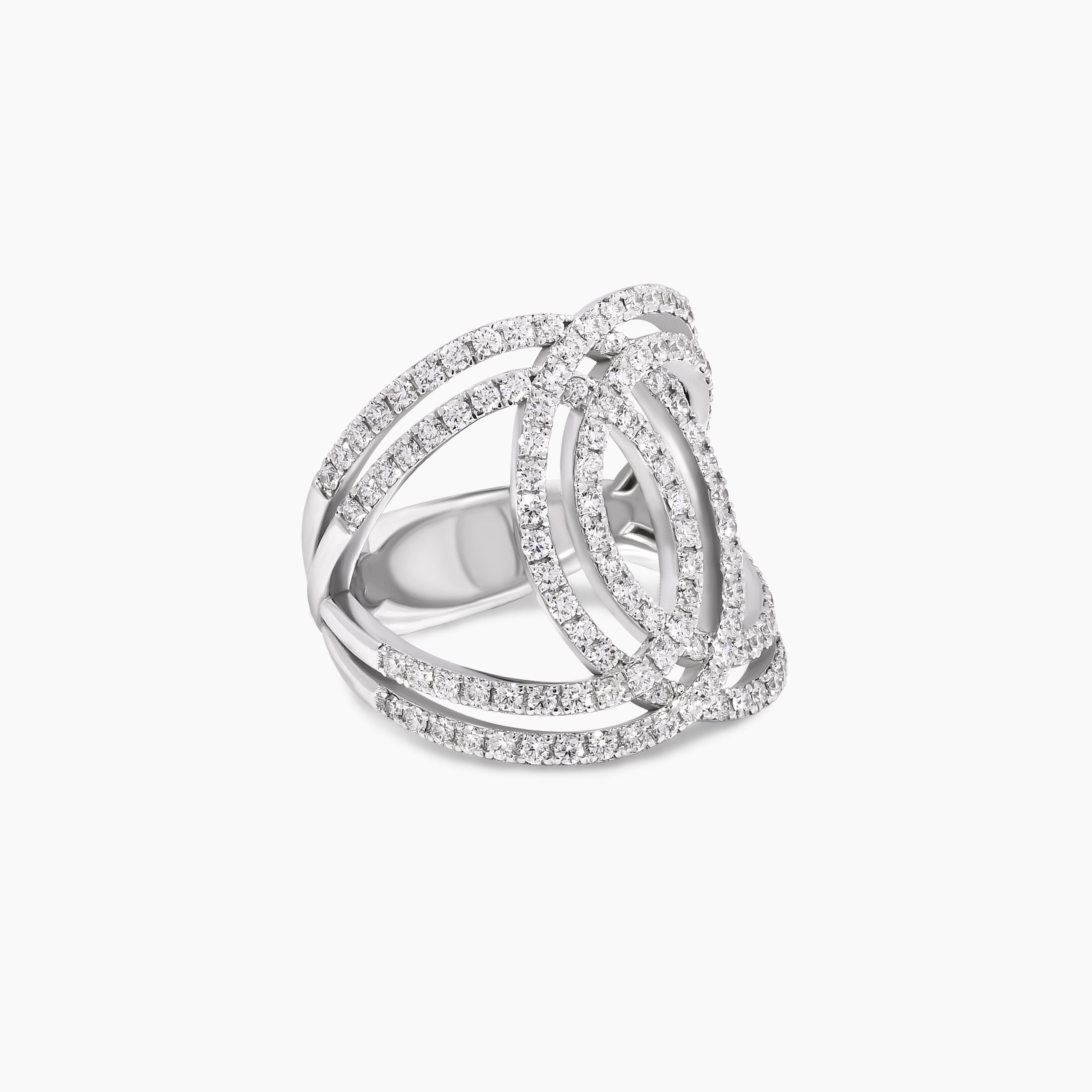 The Petite Double Crossover Diamond Ring is a modern expression of elegance and sophistication. Two slim, pavé-set diamond bands intertwine in a graceful crossover design, creating a look that is both refined and eye-catching.