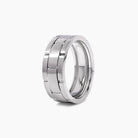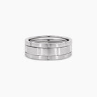 Crafted in enduring platinum, this band features a bold link-inspired design that echoes the elegance of fine watch bracelets. The combination of brushed finish adds depth and modern sophistication, making it a versatile piece for everyday wear or as a statement wedding band. Its solid weight and sleek profile embody both strength and timeless style, perfect for the man who values refined craftsmanship and understated luxury.