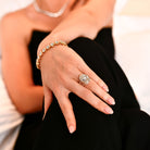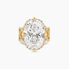 This bold yet elegant ring features a stunning oval cut lab grown diamond at its center, radiating timeless brilliance. The wide yellow gold band is lined with shimmering round diamonds, adding depth, sparkle, and a luxurious finish. Designed to make a statement from every angle, this ring balances modern sophistication with classic elegance.