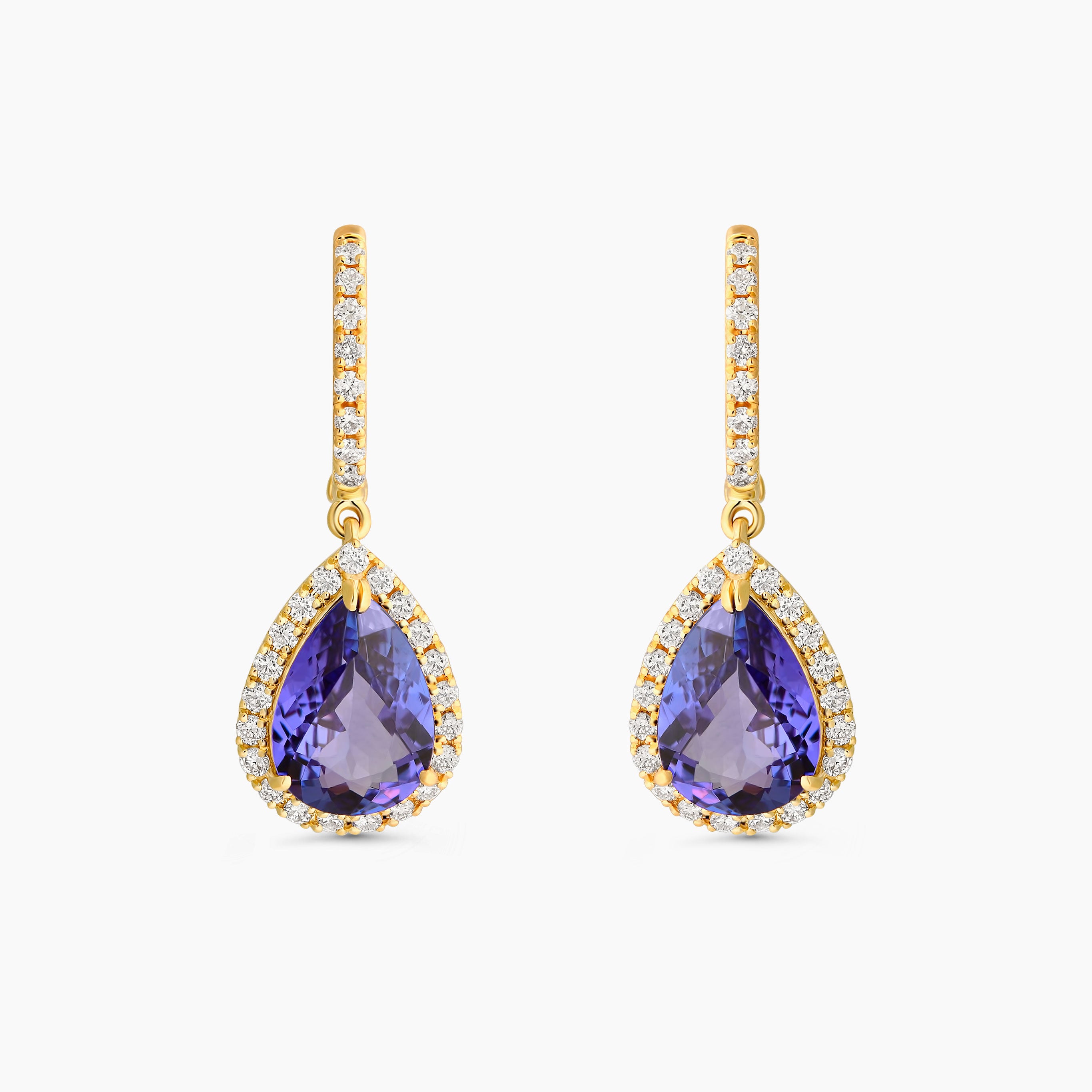Pear shaped Tanzanite and Diamond Dangle Earrings