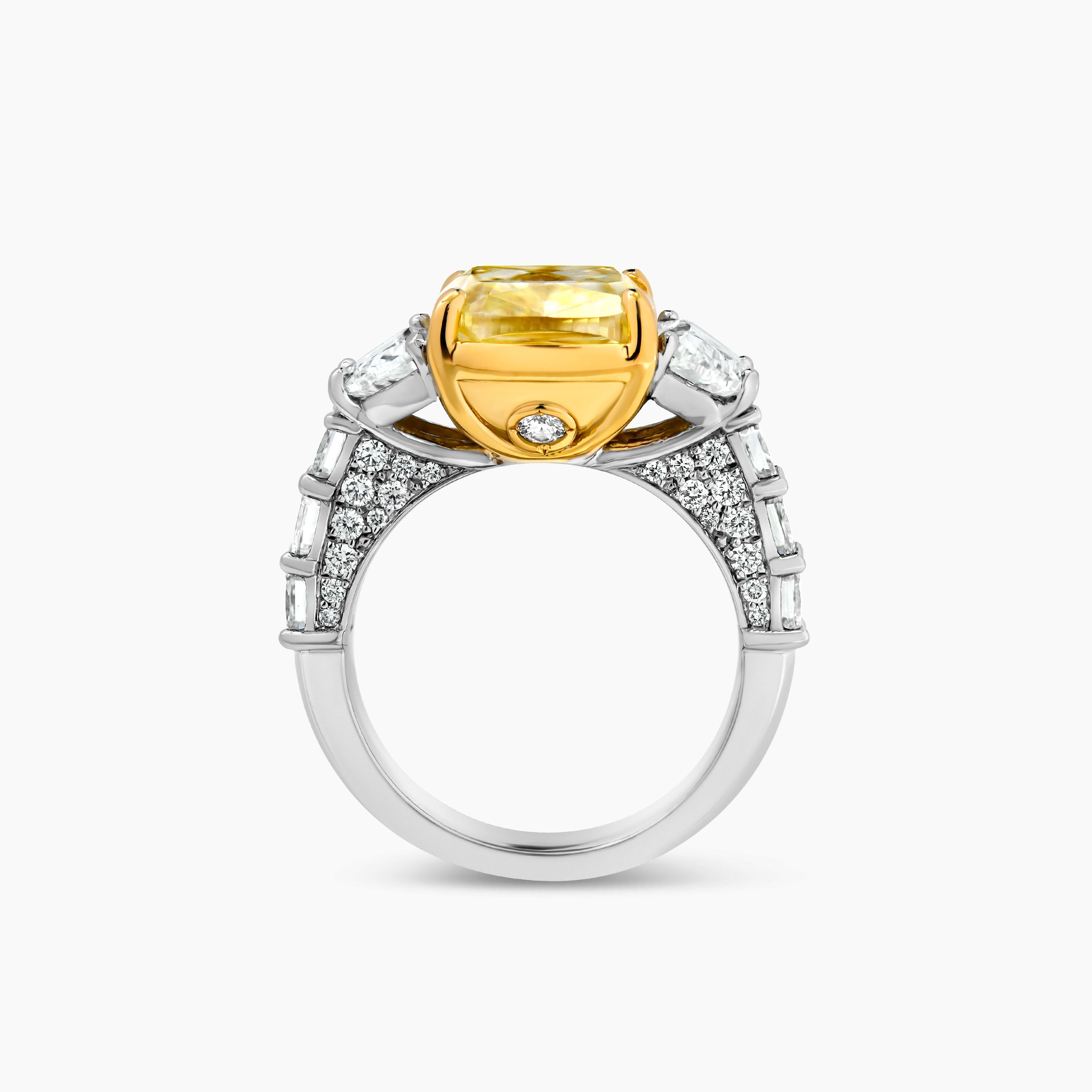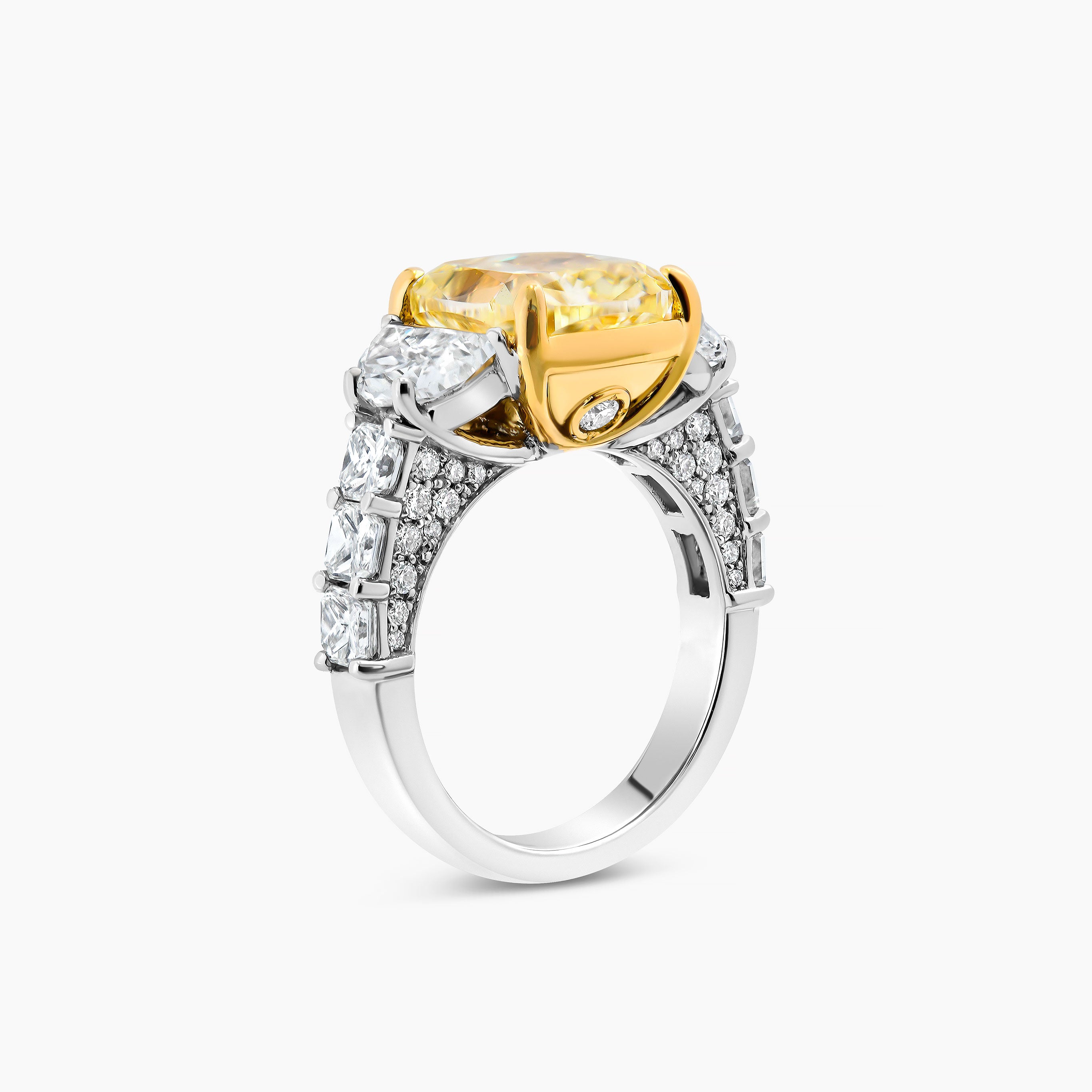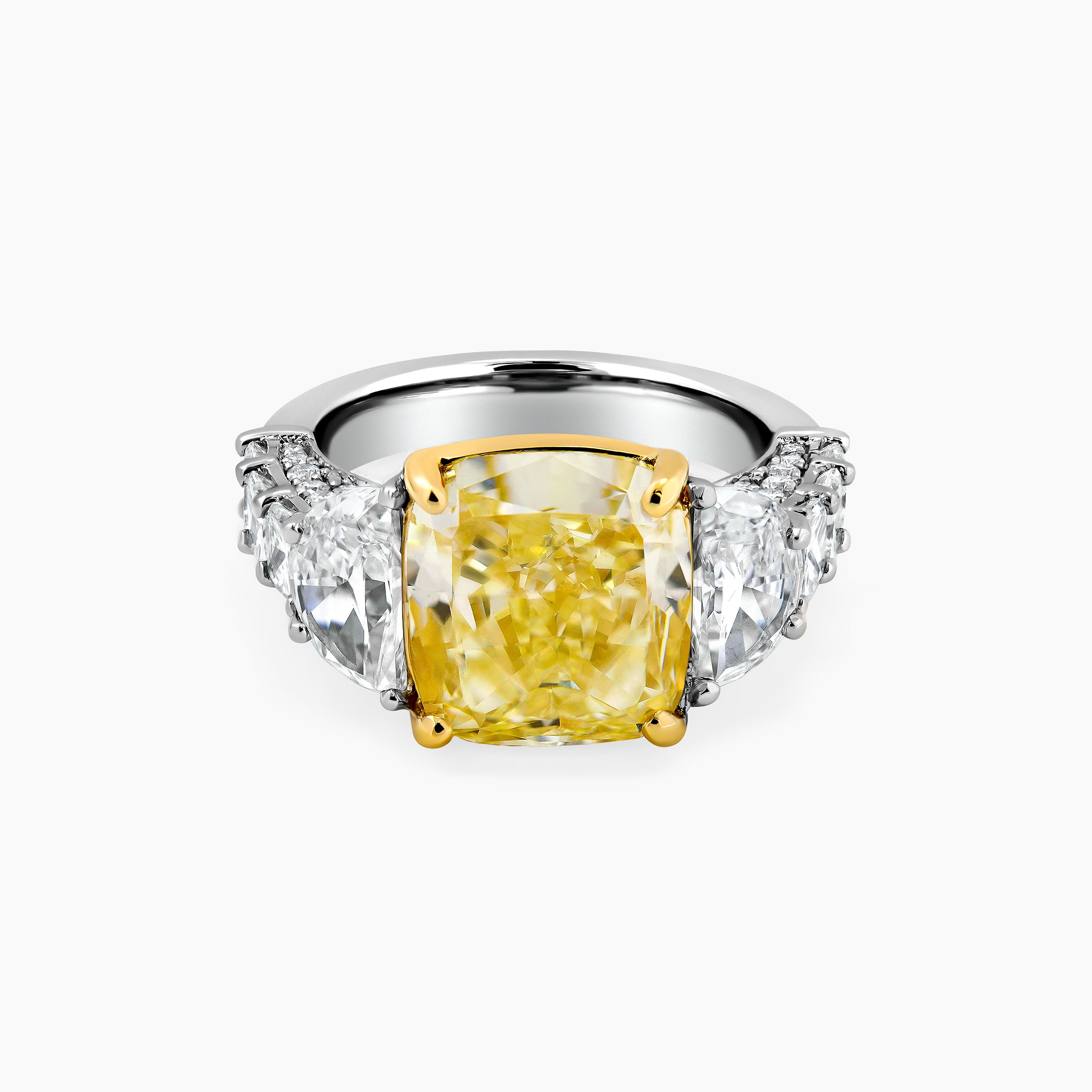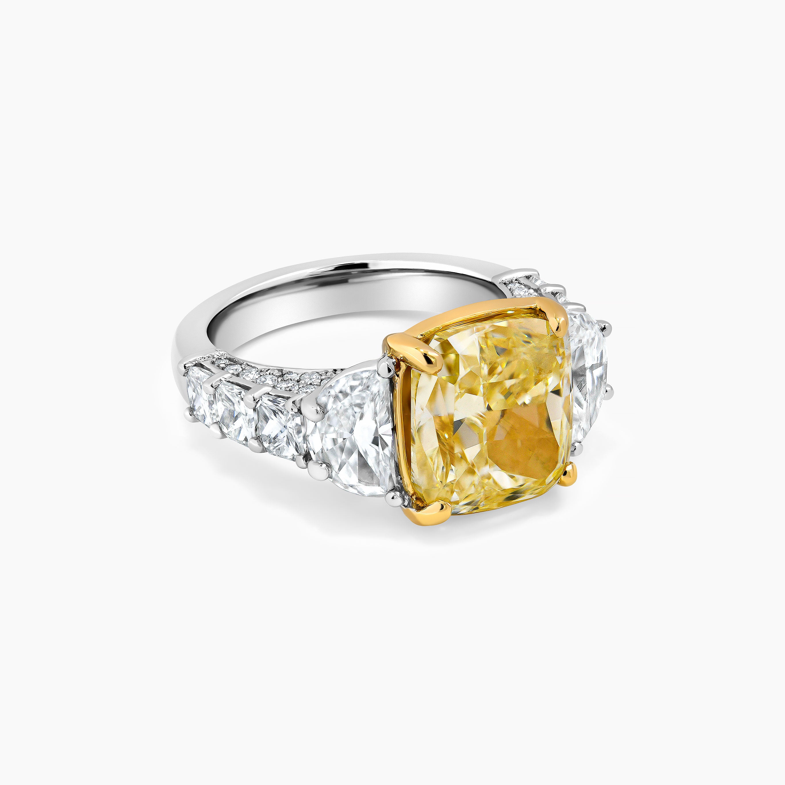 Yellow Diamond Cushion cut and Half Moons cut Diamond Ring