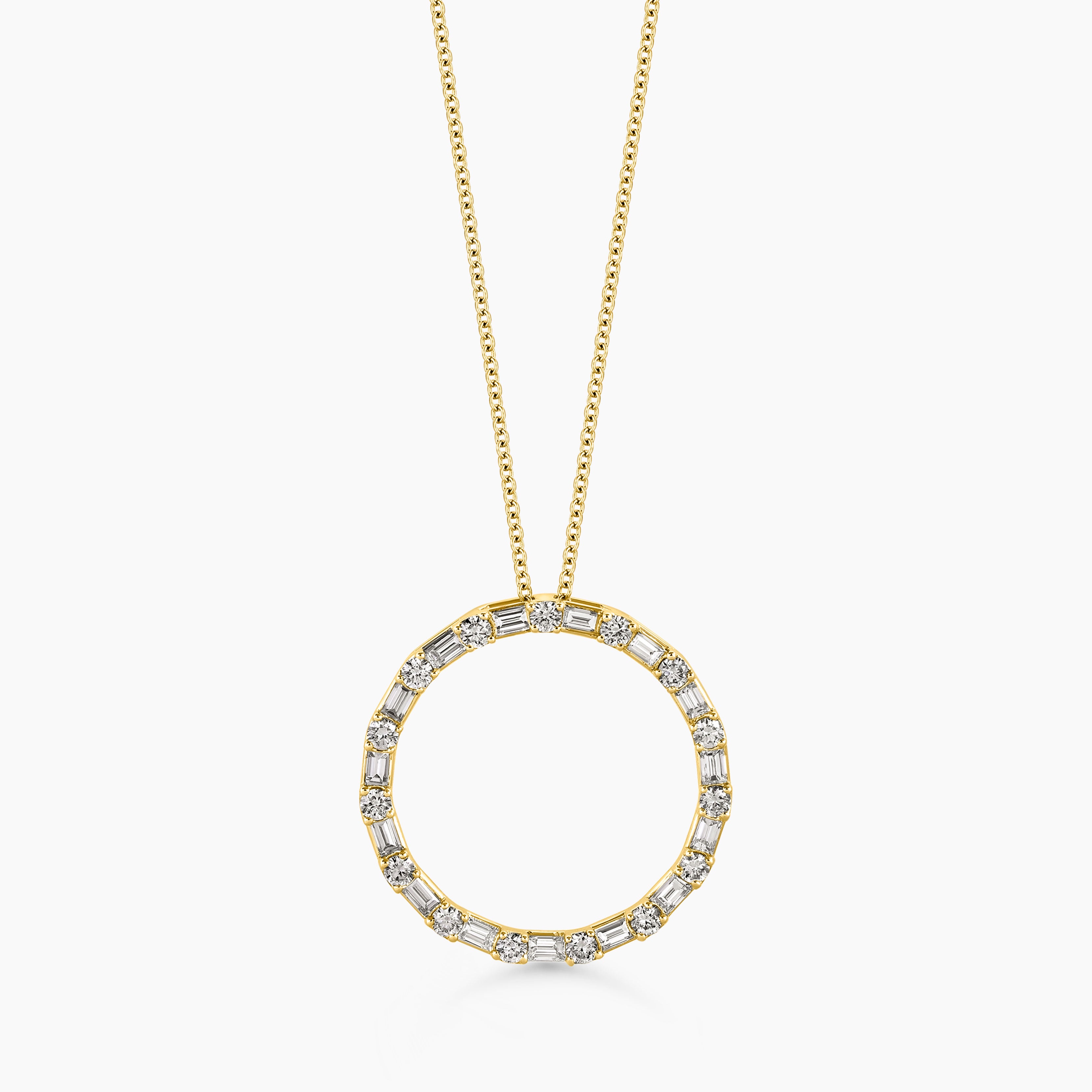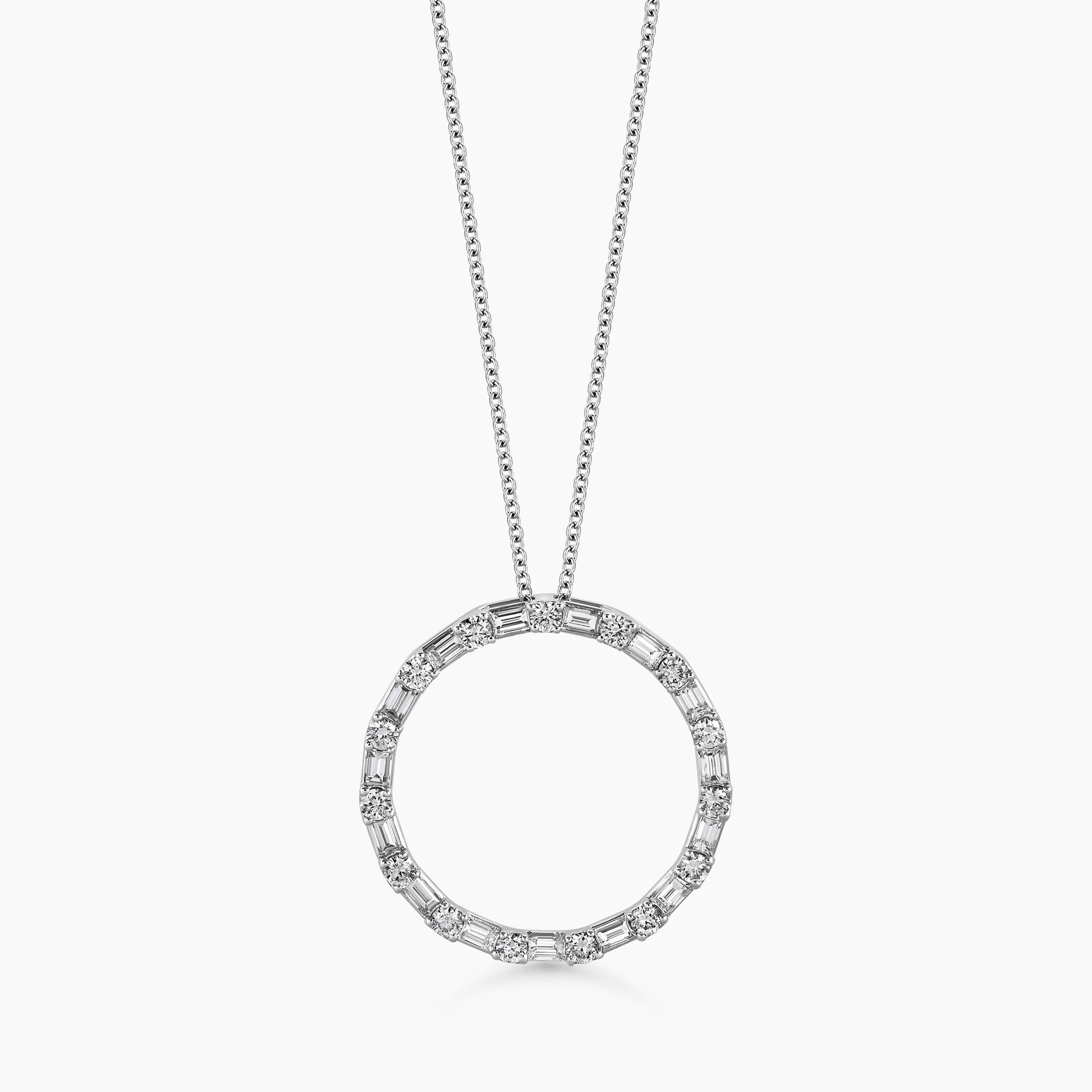 Baguette and Round Diamond Circle Pendant