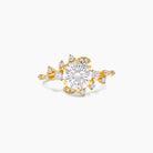 Inspired by nature’s elegance, the Golden Flora Vine Round Diamond Ring features a brilliant round diamond at its center, embraced by a flowing vine design. Delicate leaf motifs adorned with sparkling round diamonds gracefully wrap around the band, creating a romantic balance of artistry and brilliance.