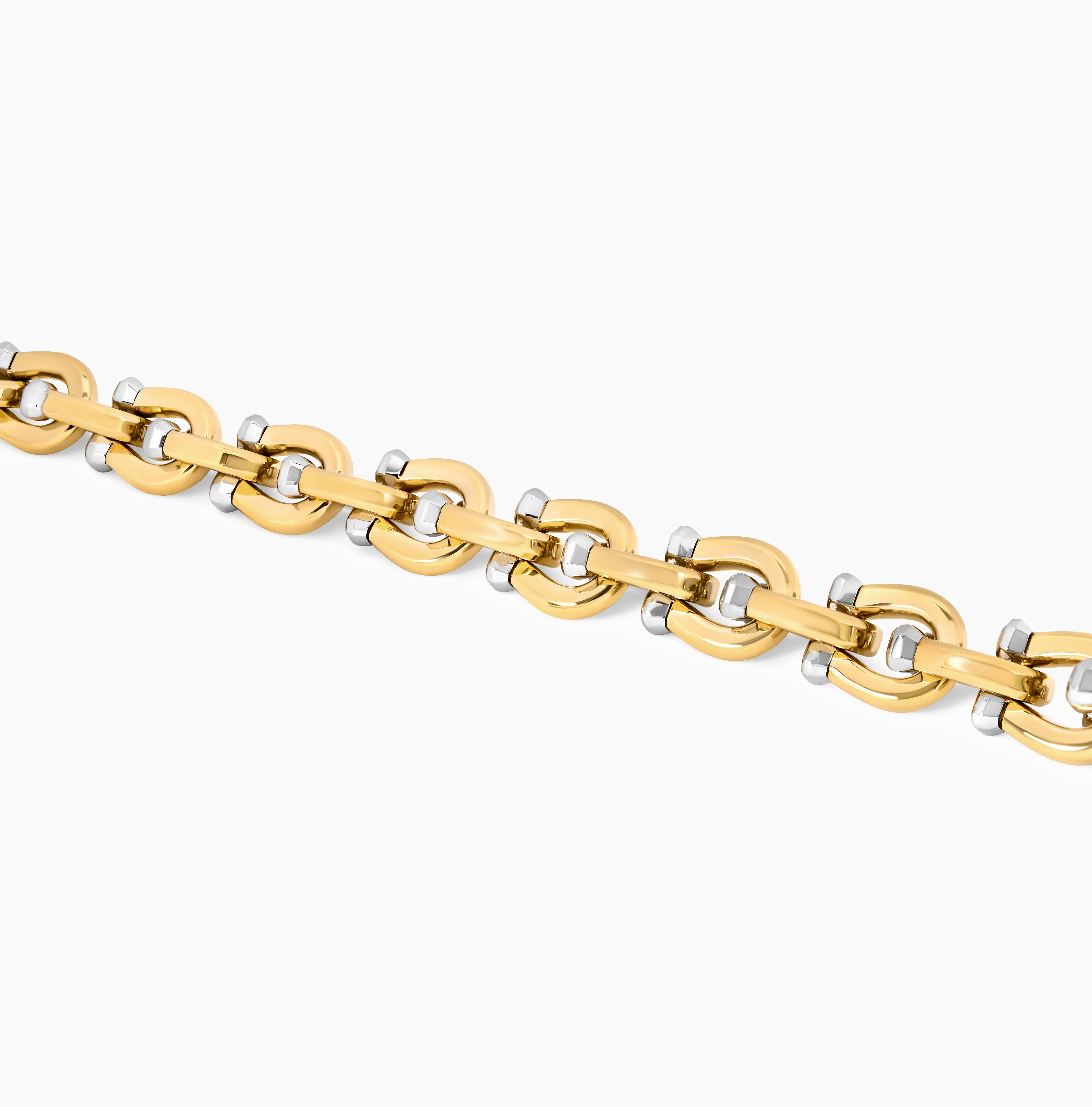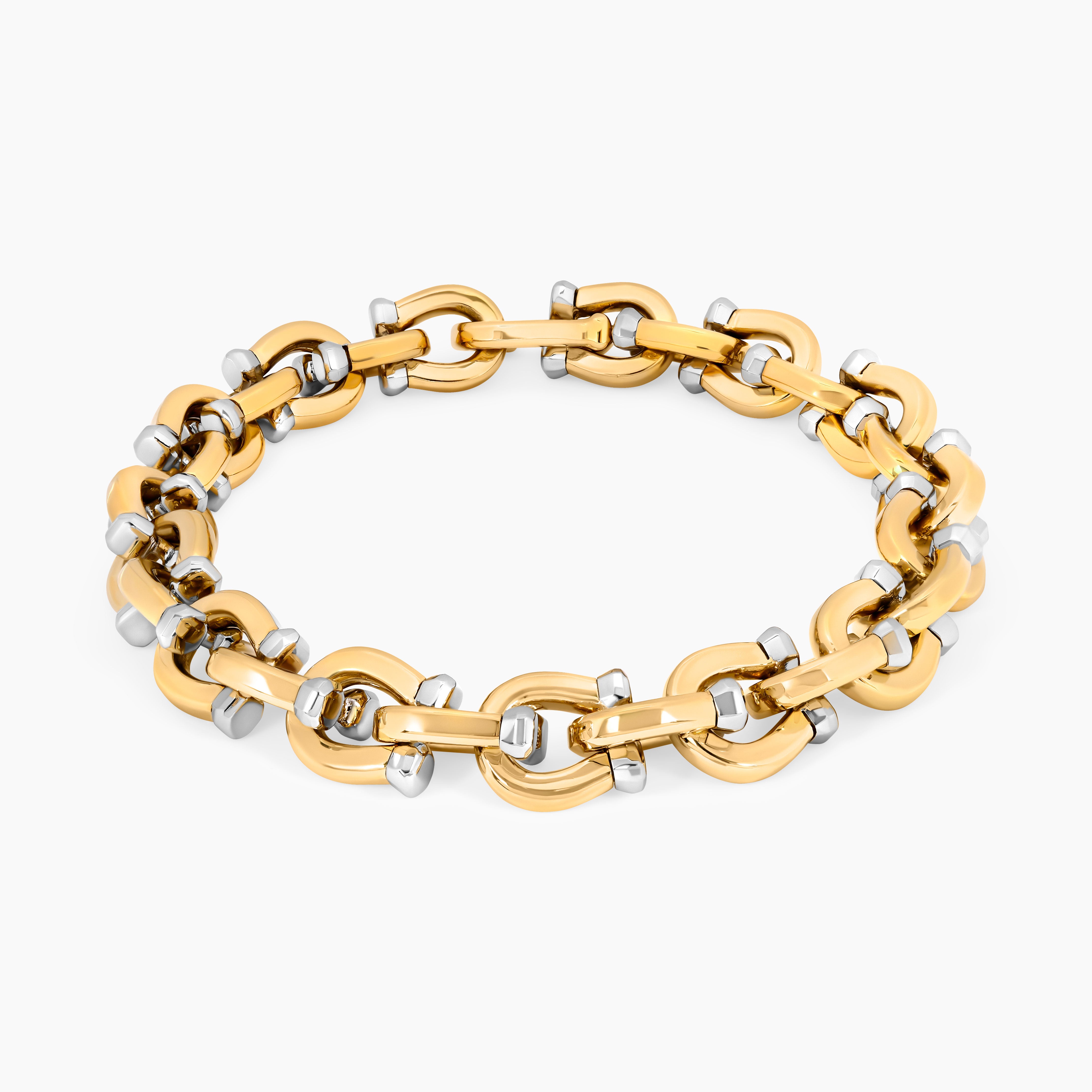 The 18k and platinum horseshoe bracelet, created in collaboration with the legendary Mike Smith, combines luxury with a nod to the world of horse racing. The sleek horseshoe design, crafted in fine 18k gold and platinum, captures the essence of Mike's skill and precision on the track. This bracelet is a statement of both elegance and good fortune, making it the perfect piece for anyone who admires the thrill of racing and the artistry of fine jewelry.