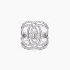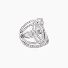 The Petite Double Crossover Diamond Ring is a modern expression of elegance and sophistication. Two slim, pavé-set diamond bands intertwine in a graceful crossover design, creating a look that is both refined and eye-catching.